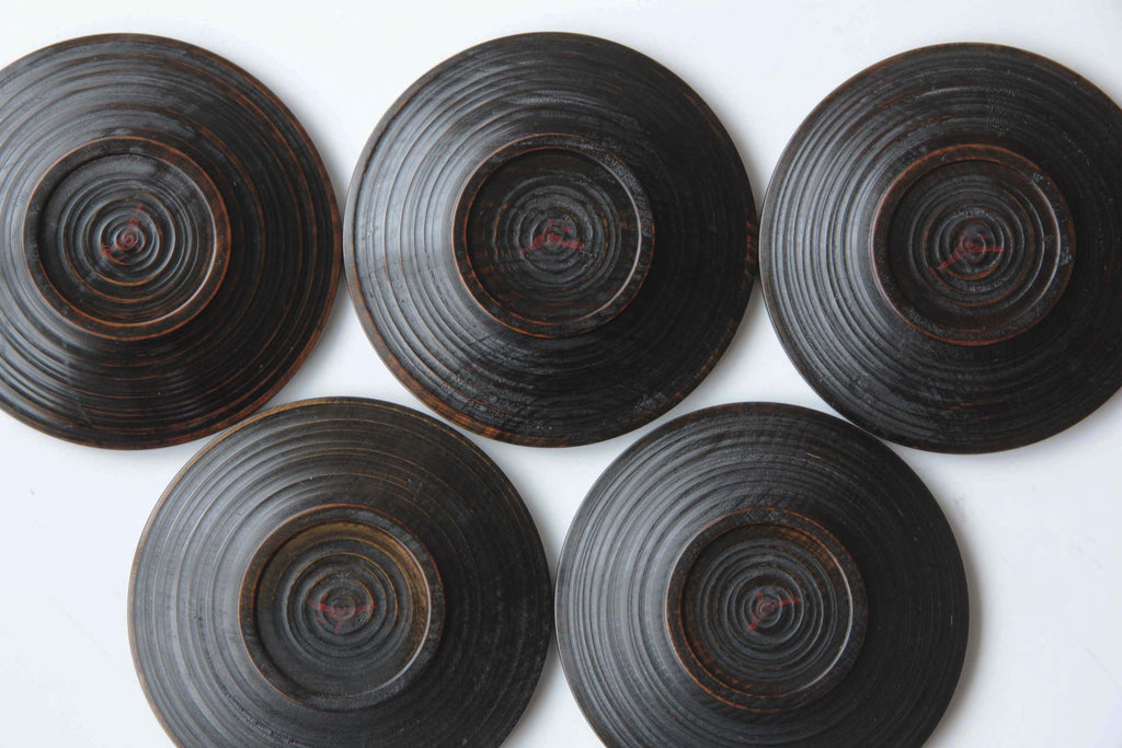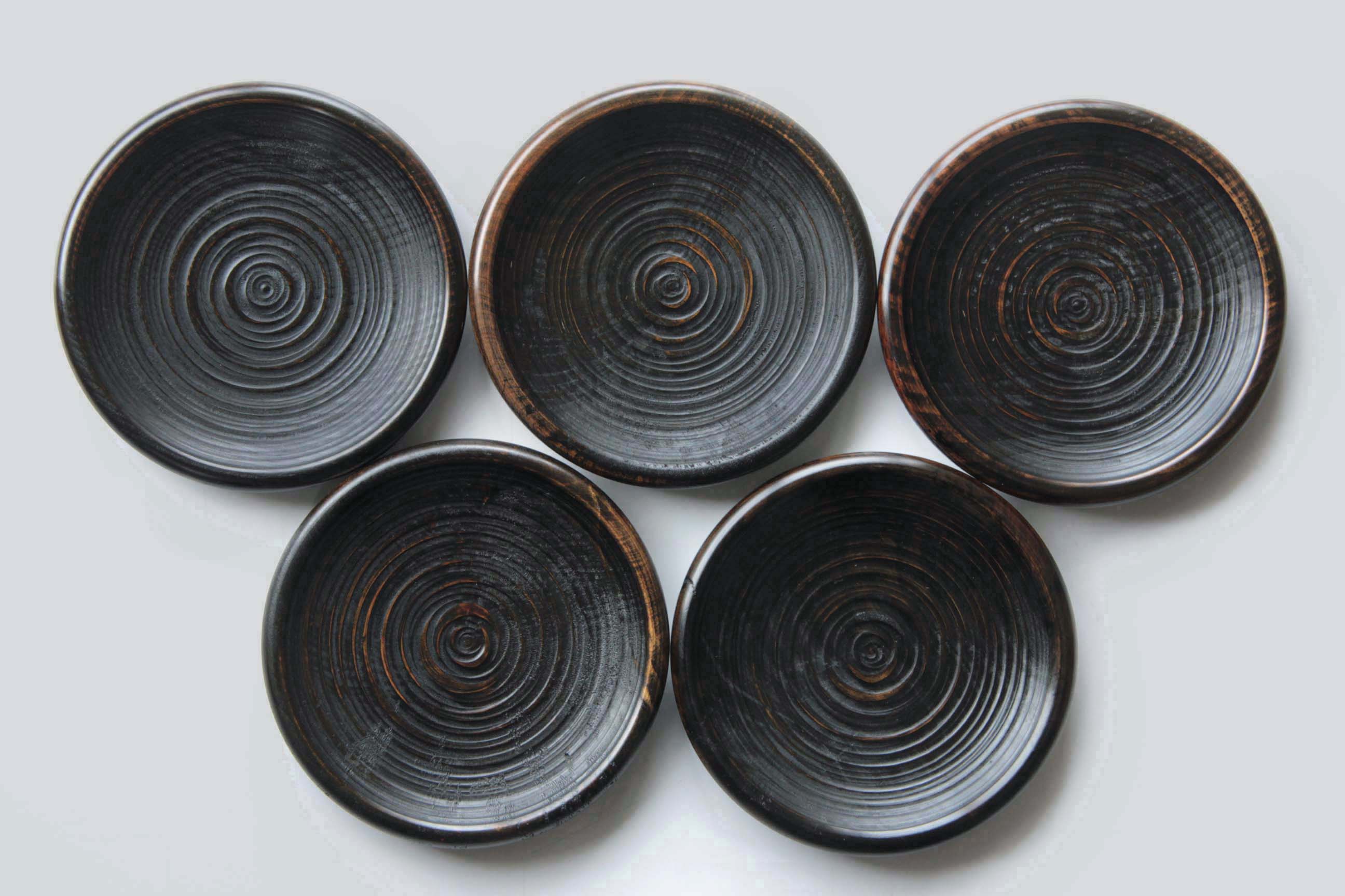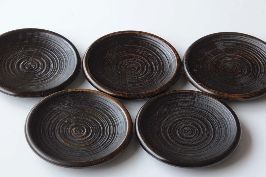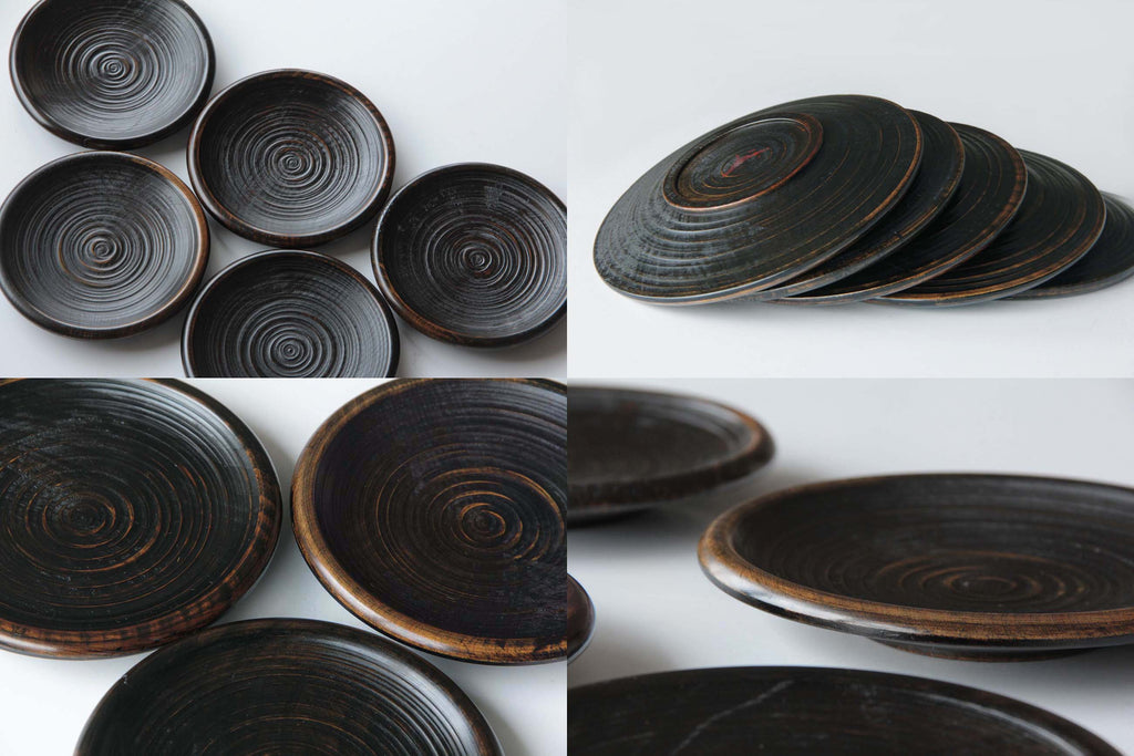 Hand-carved plates by skilled artisans - Sanuki-Bori wooden craft.