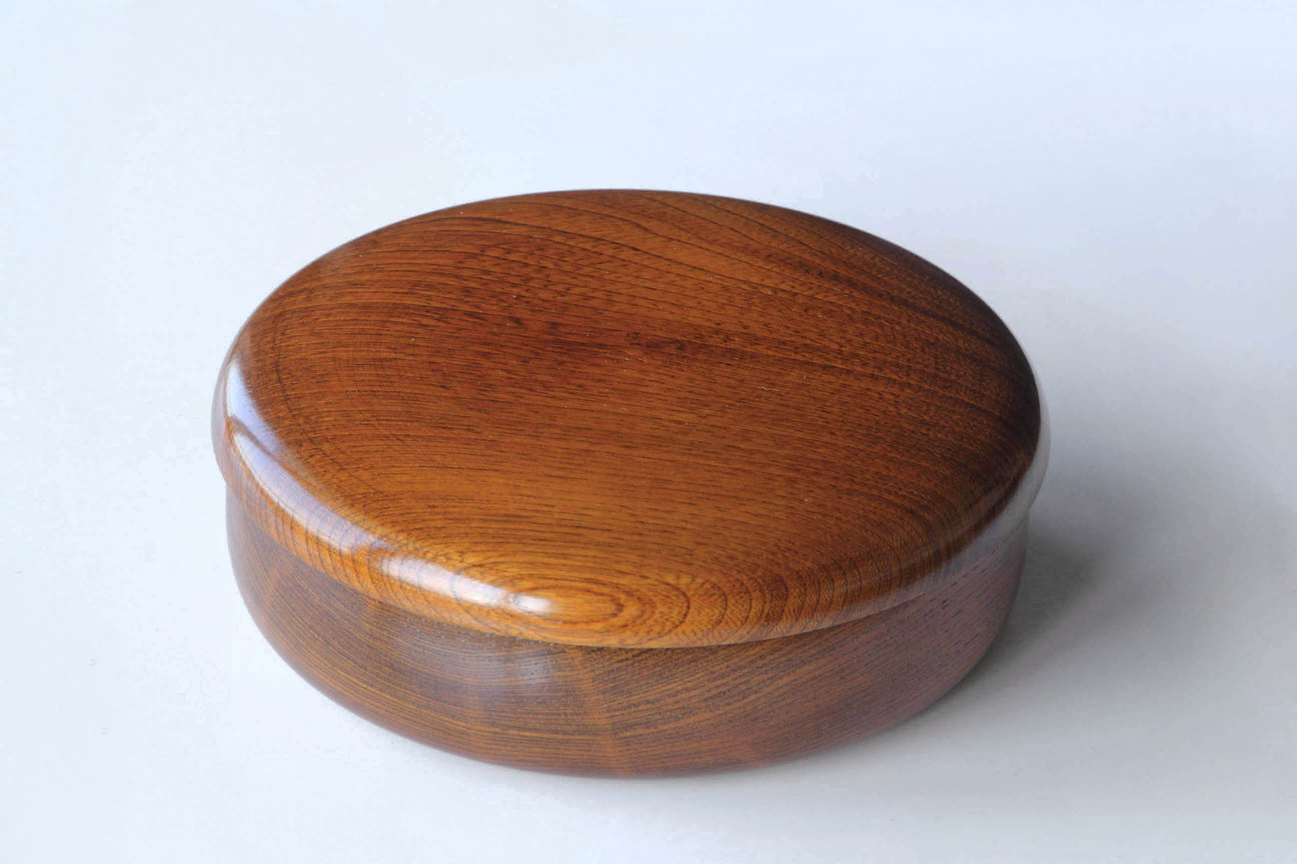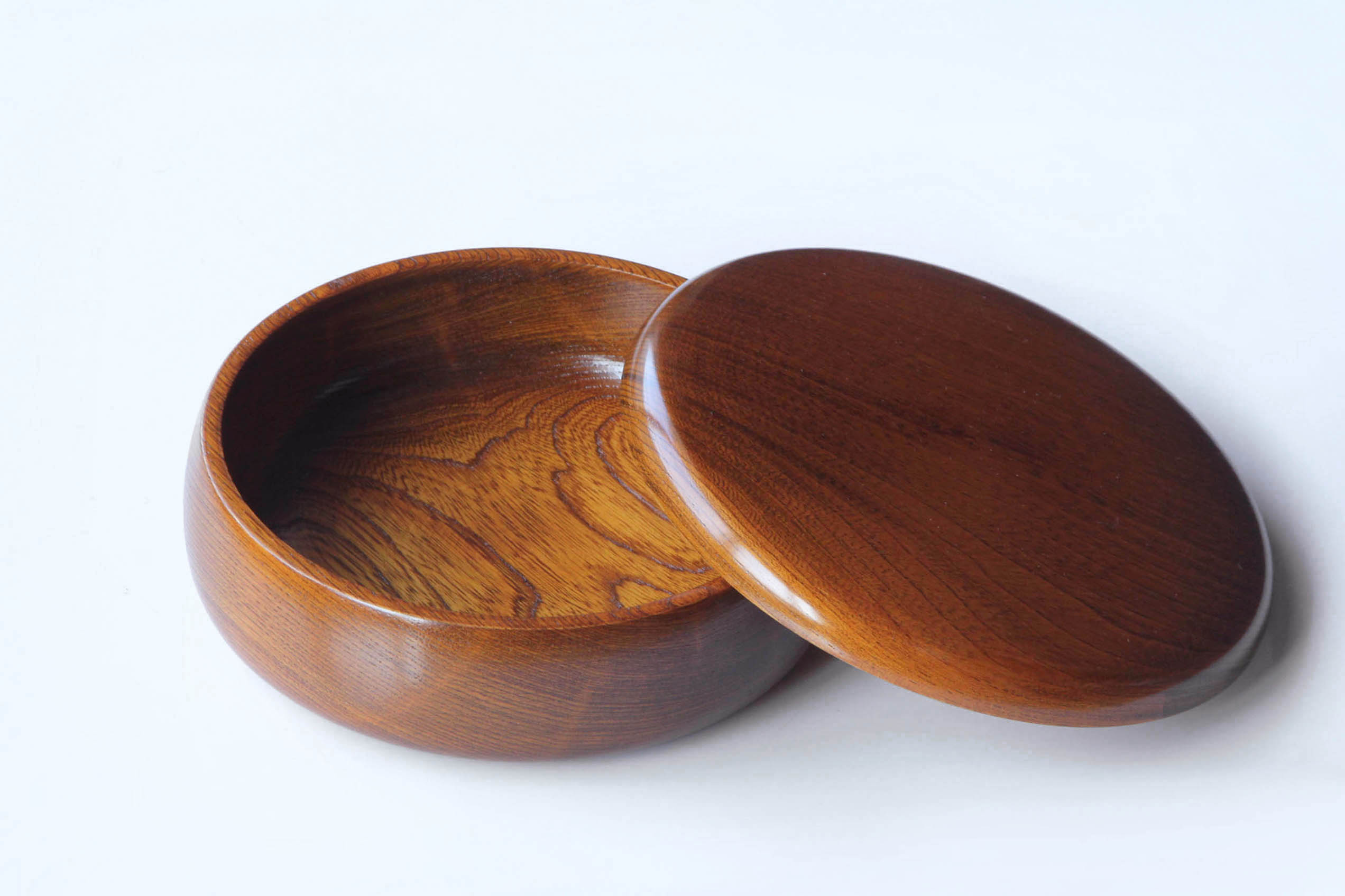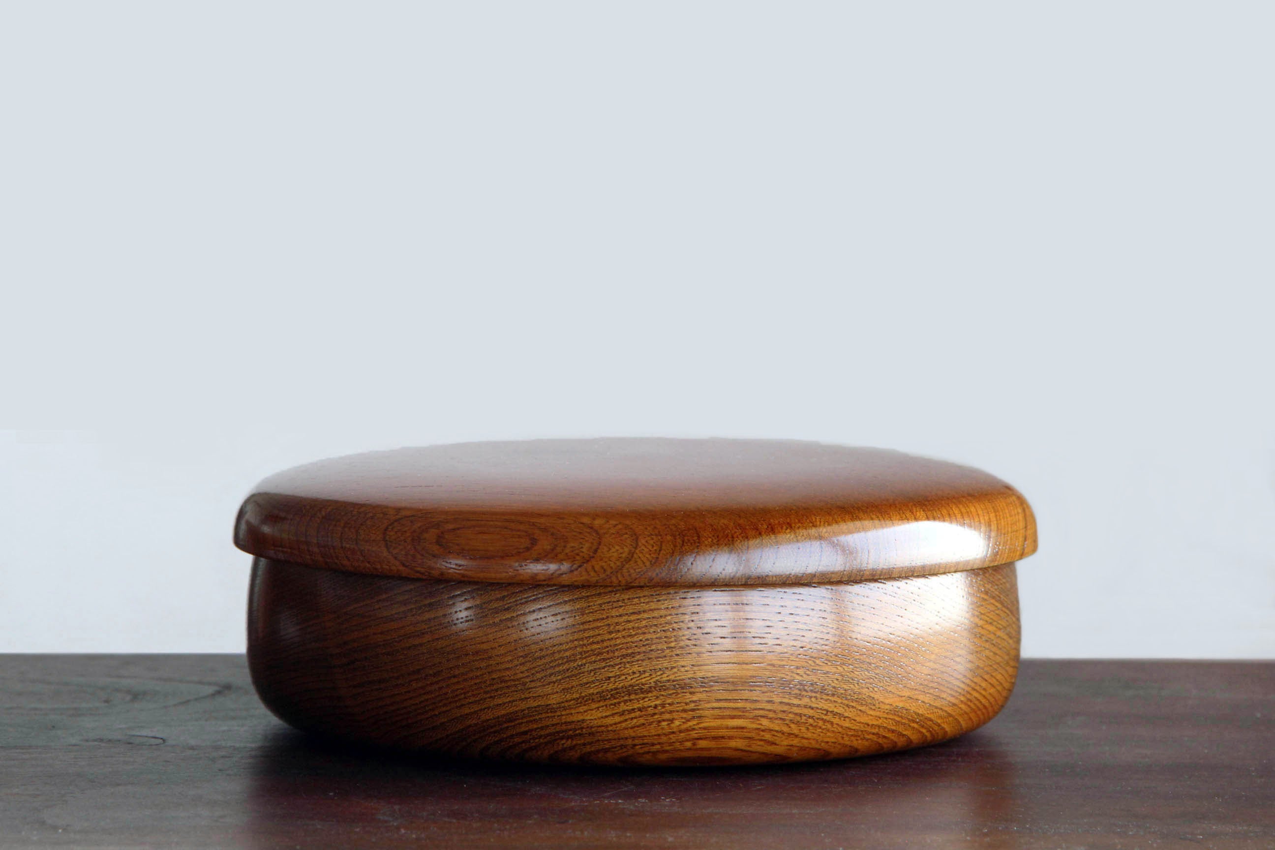 This lidded box is finished with natural urushi lacquer, applied by hand by a skilled Japanese artisan.