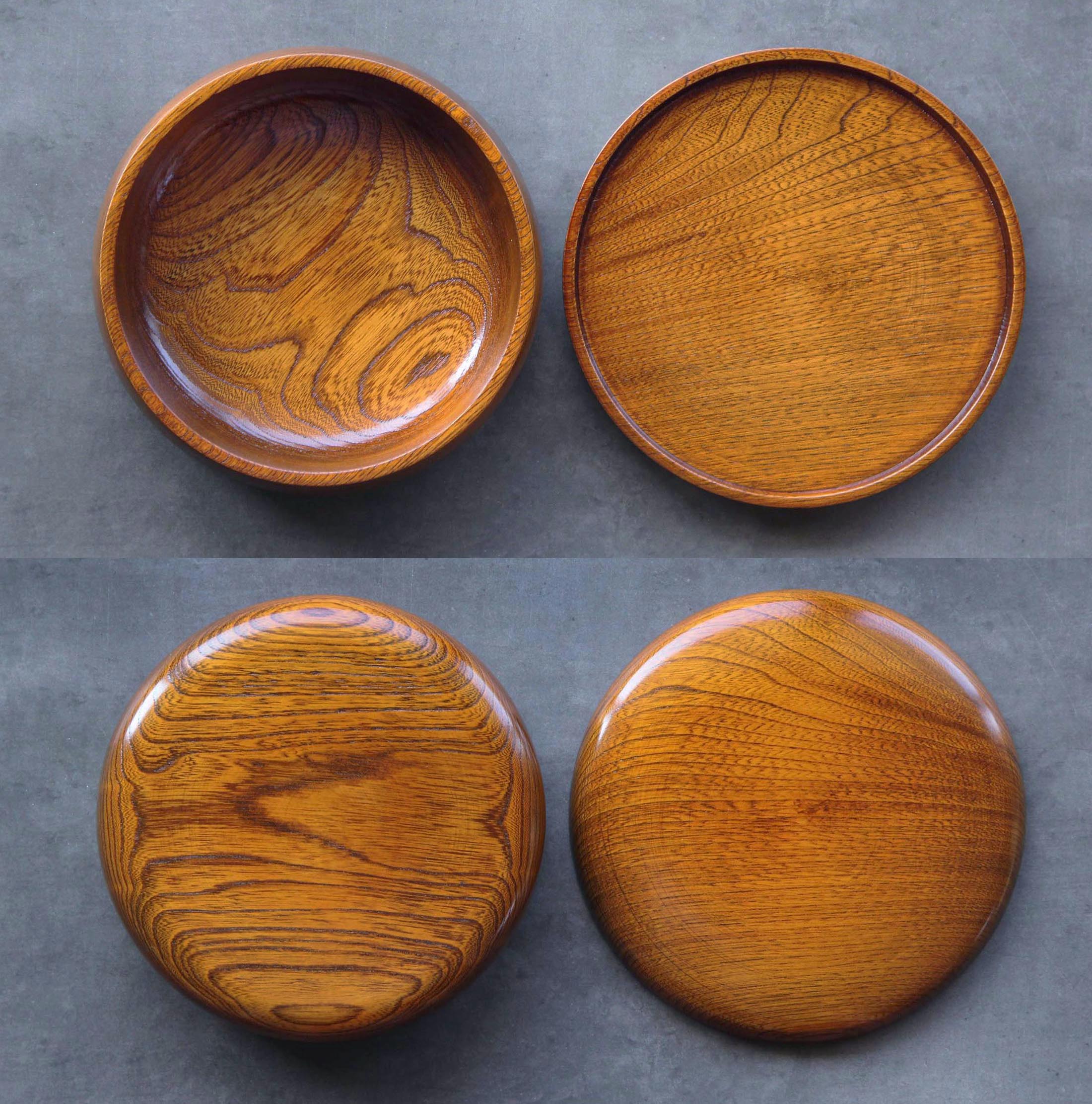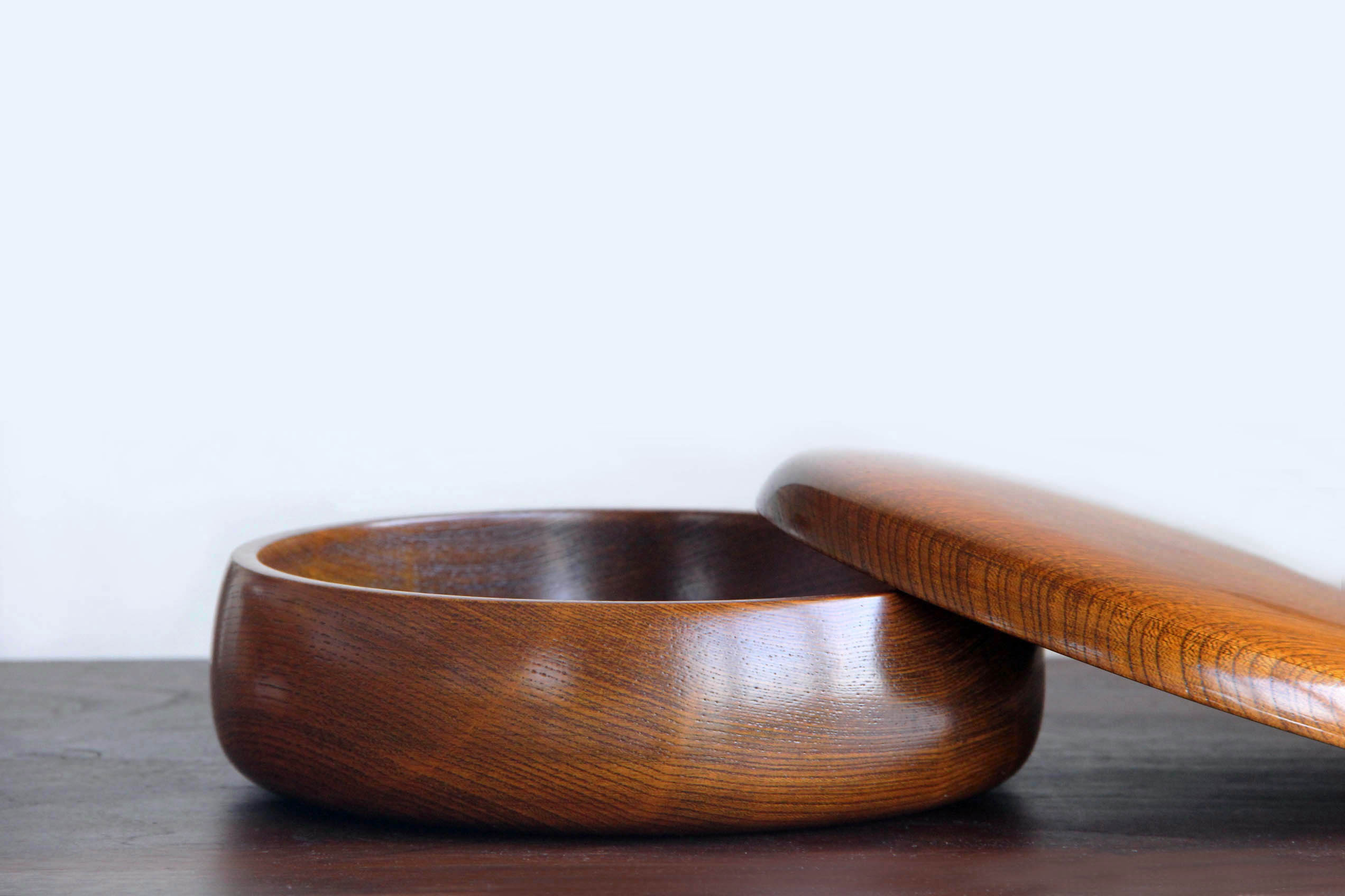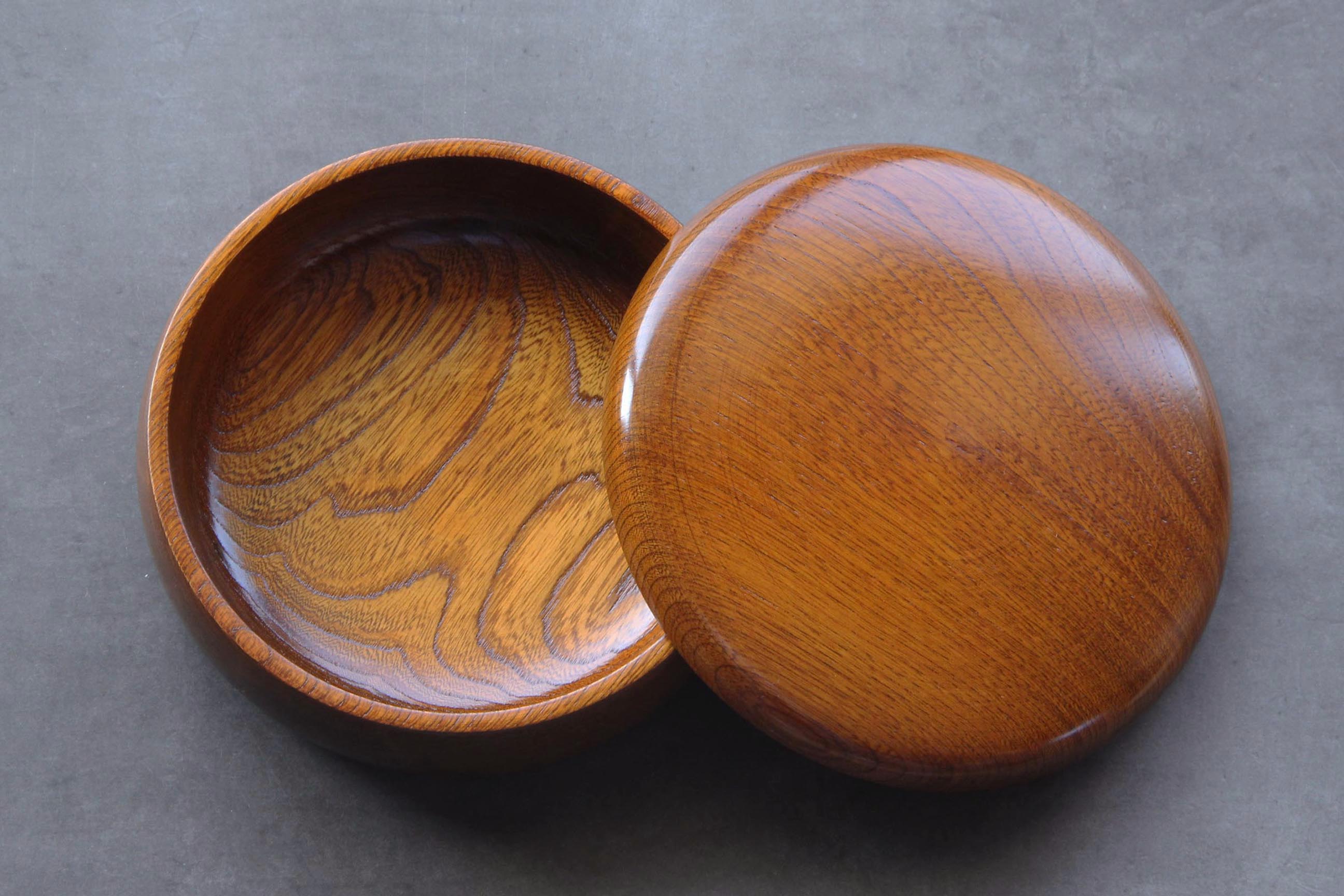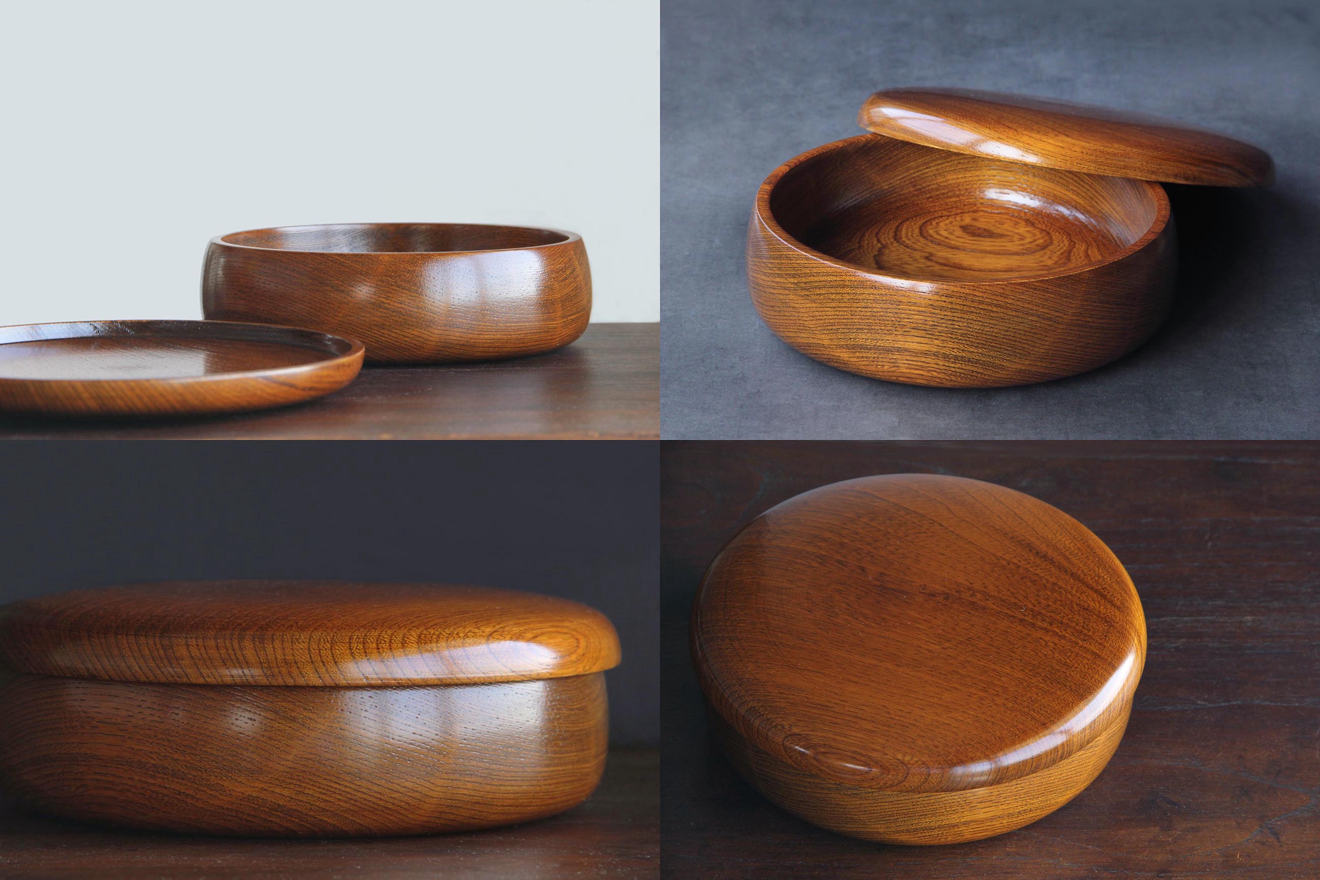This lidded box is finished with natural urushi lacquer, applied by hand by a skilled Japanese artisan.