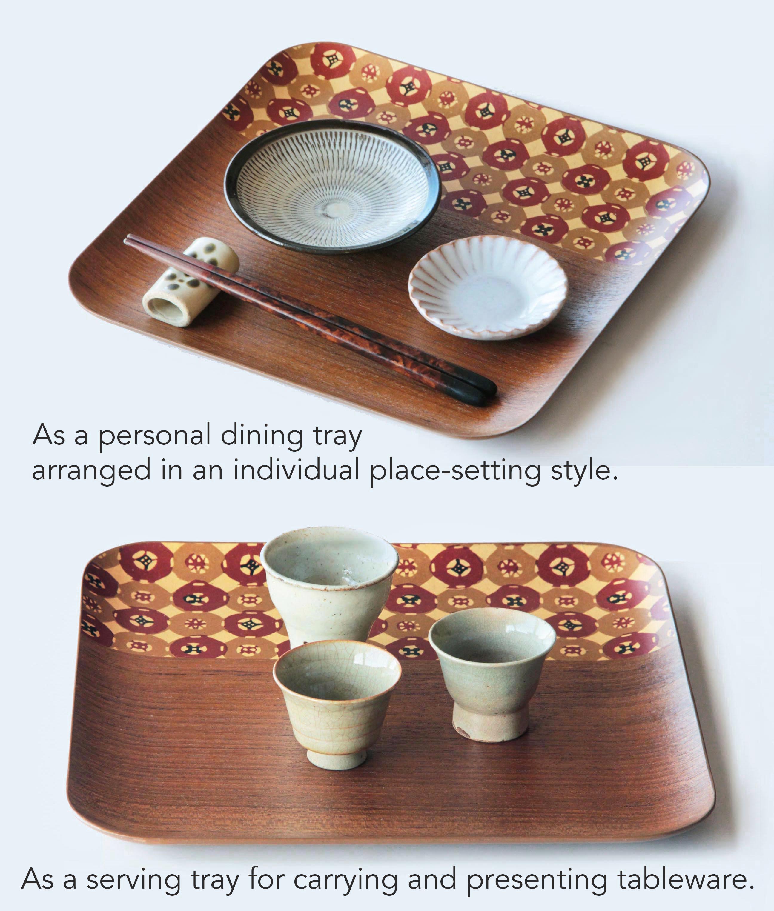 The decorative motif is made by printing a hand-drawn design onto paper and applying it to the tray. Although the printed area is coated, please avoid washing or rubbing that section.