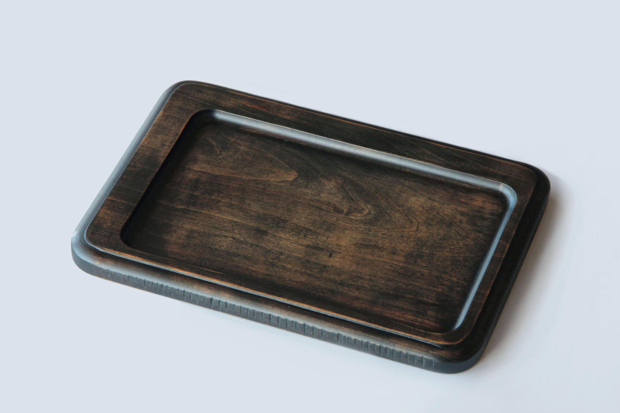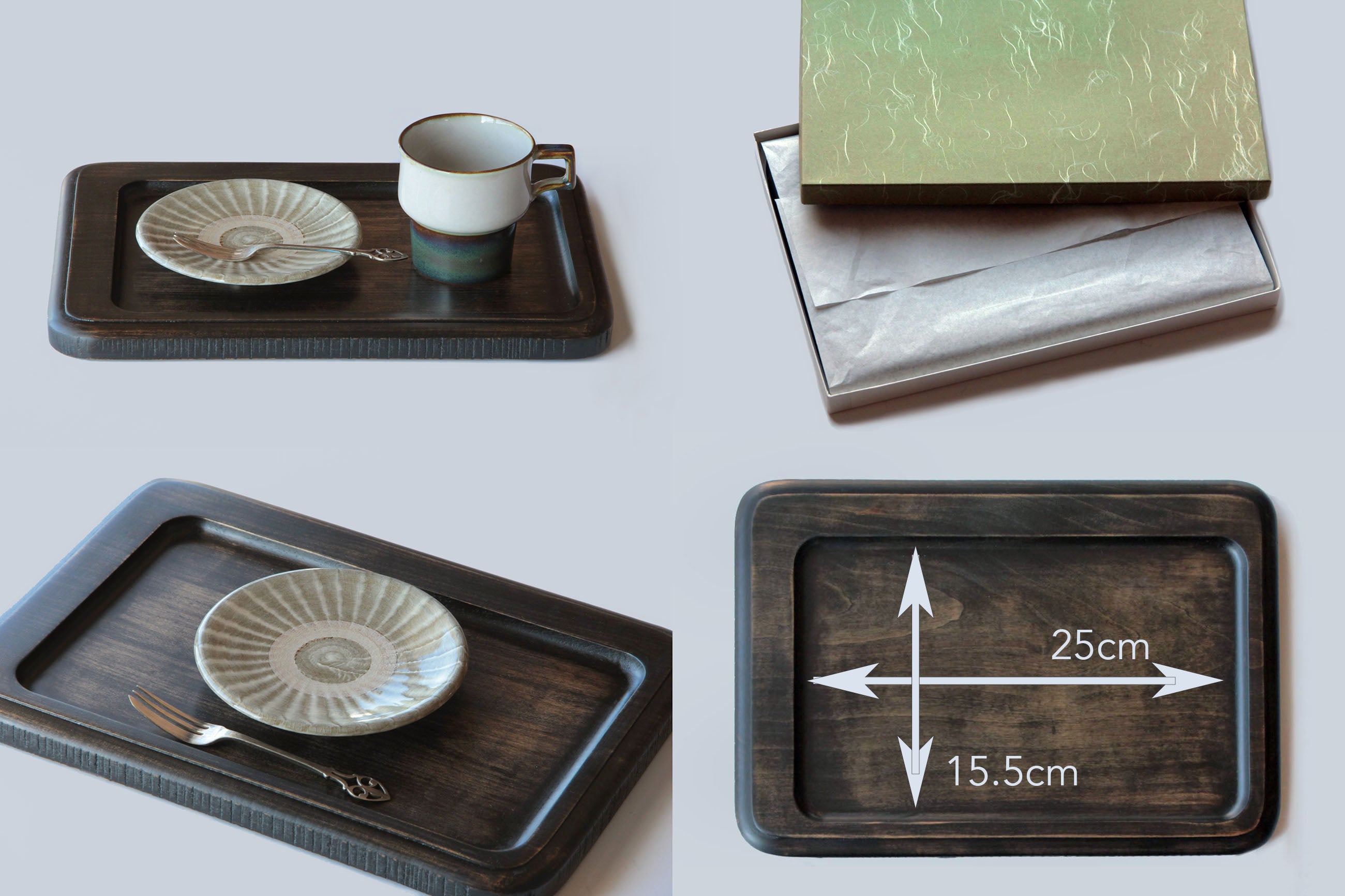 A small wooden tray carved from a single piece of wood and finished with natural urushi lacquer for a refined, semi-matte appearance. Ideal for serving tea or styling small items as part of your interior décor, offering versatile use in daily life. This tray comes from Kagawa Prefecture, a region well known for its lacquerware.