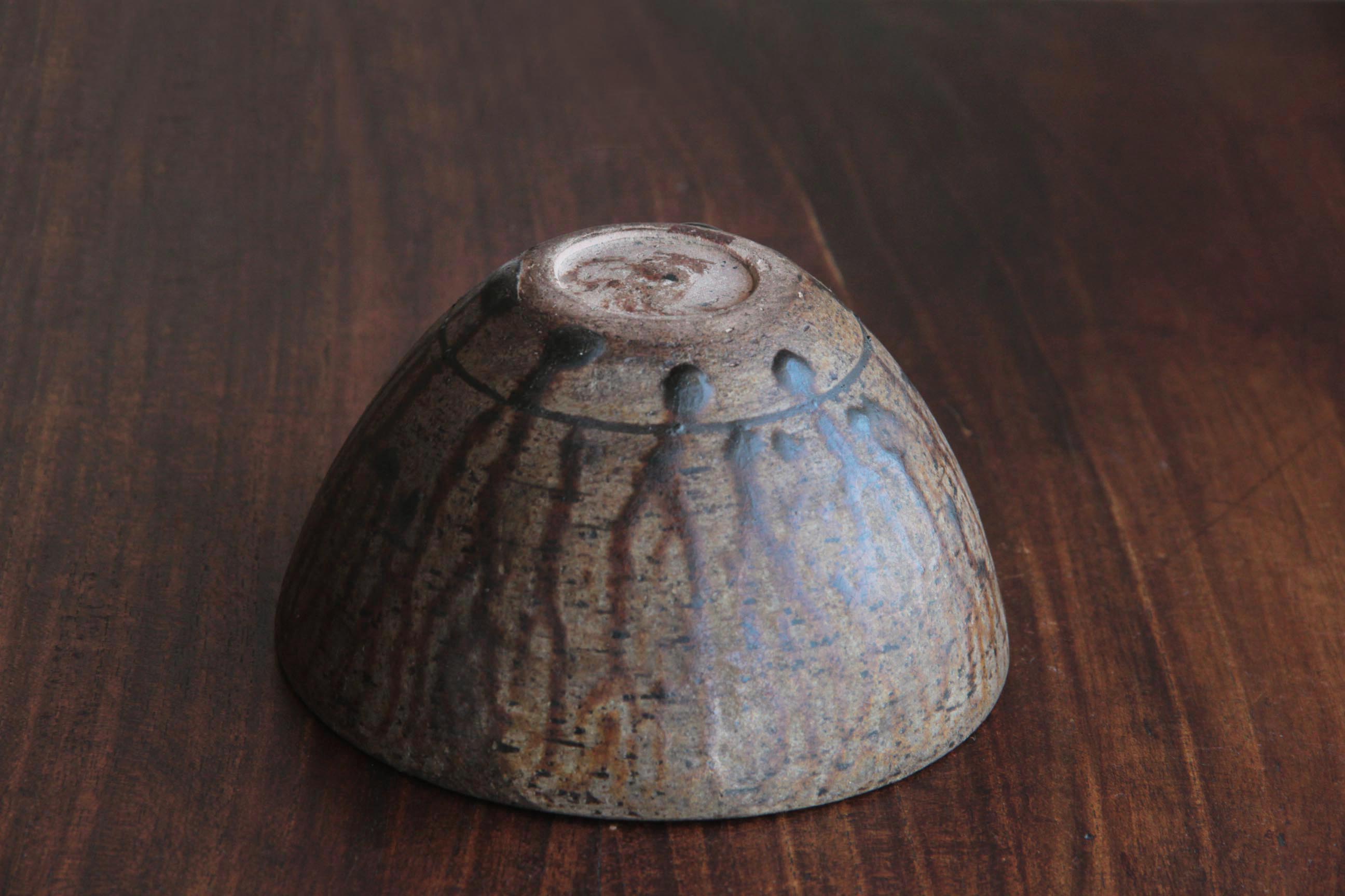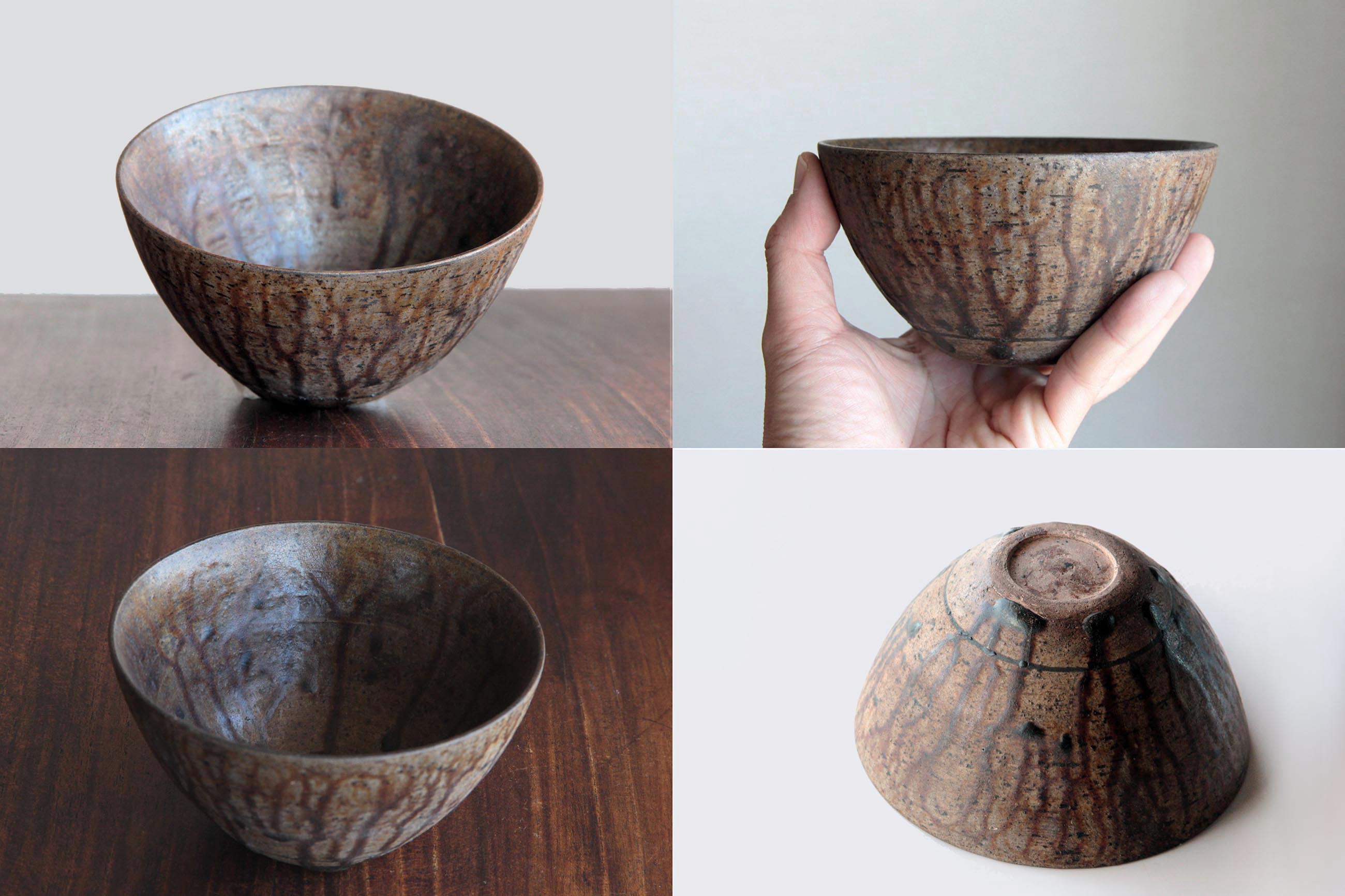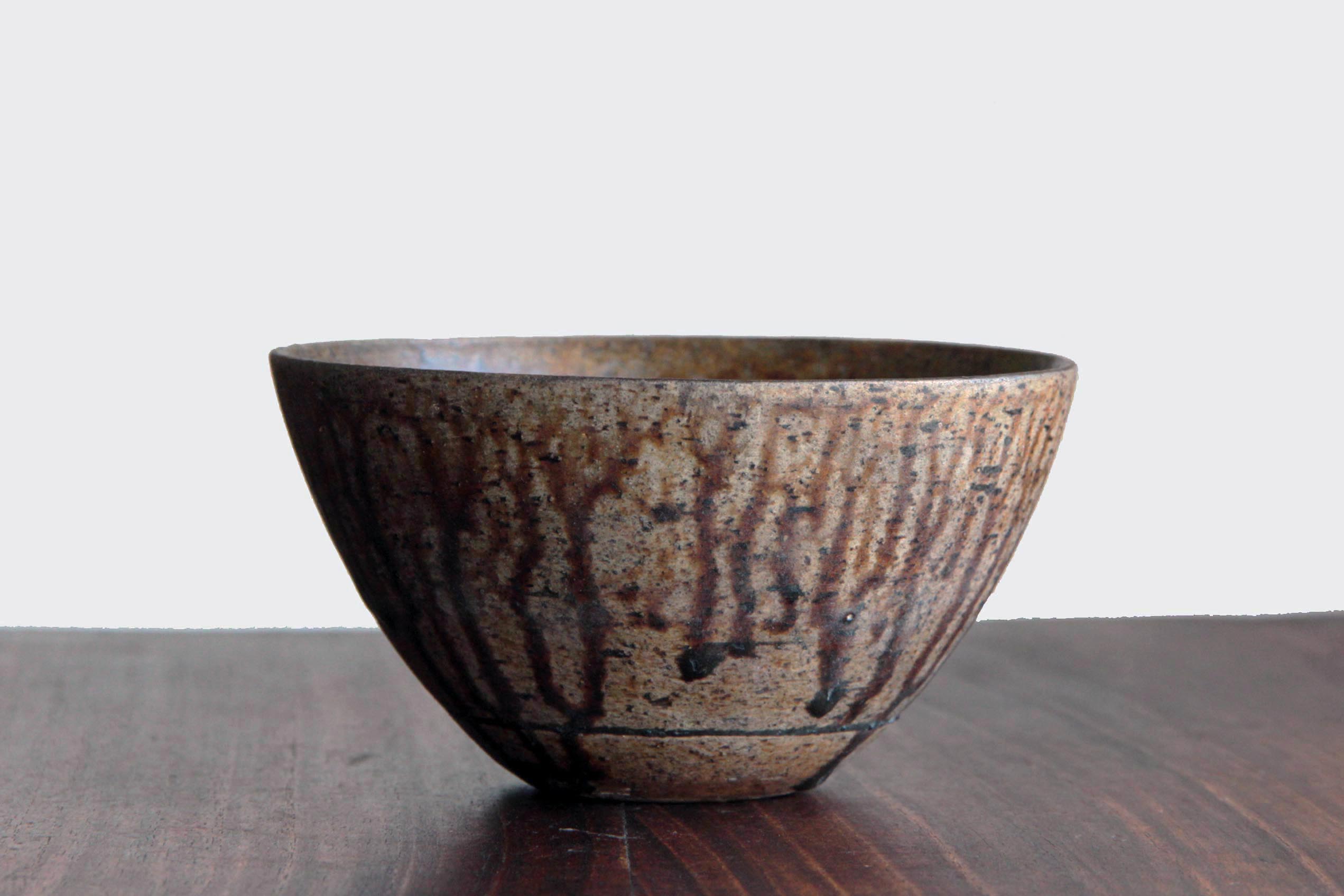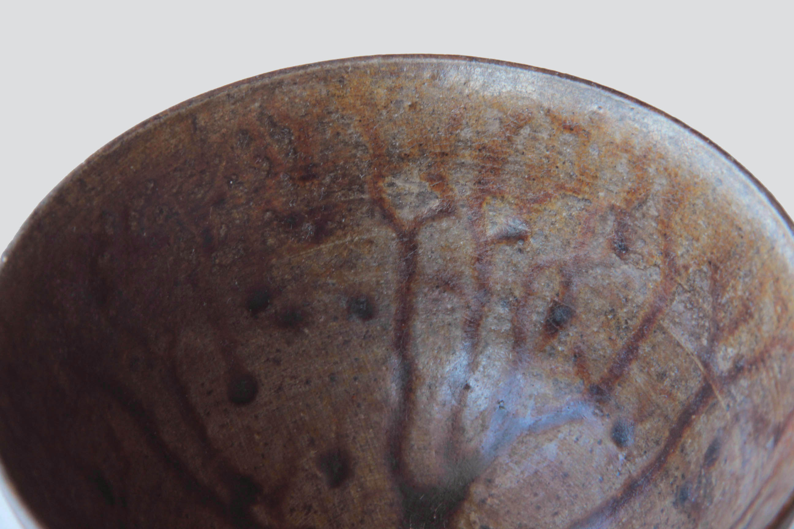 The form is quiet and assured, with a softly rounded profile and a subtly tapered foot. The surface shows natural firing traces: iron-rich clay tones, flowing ash marks.