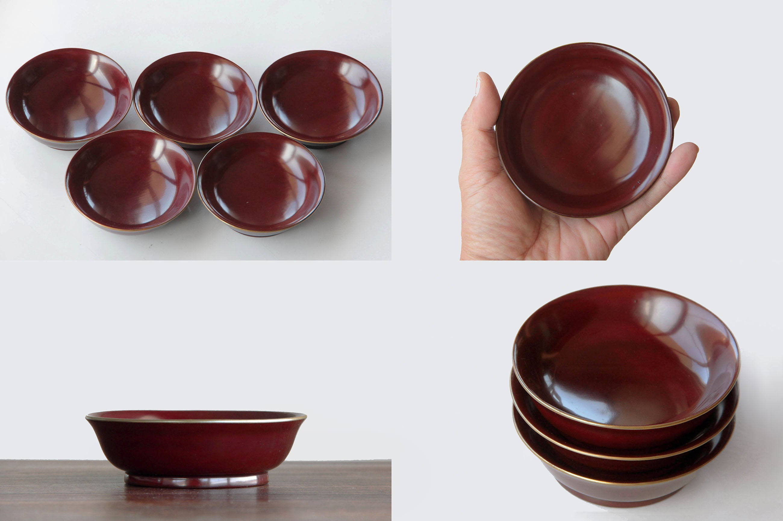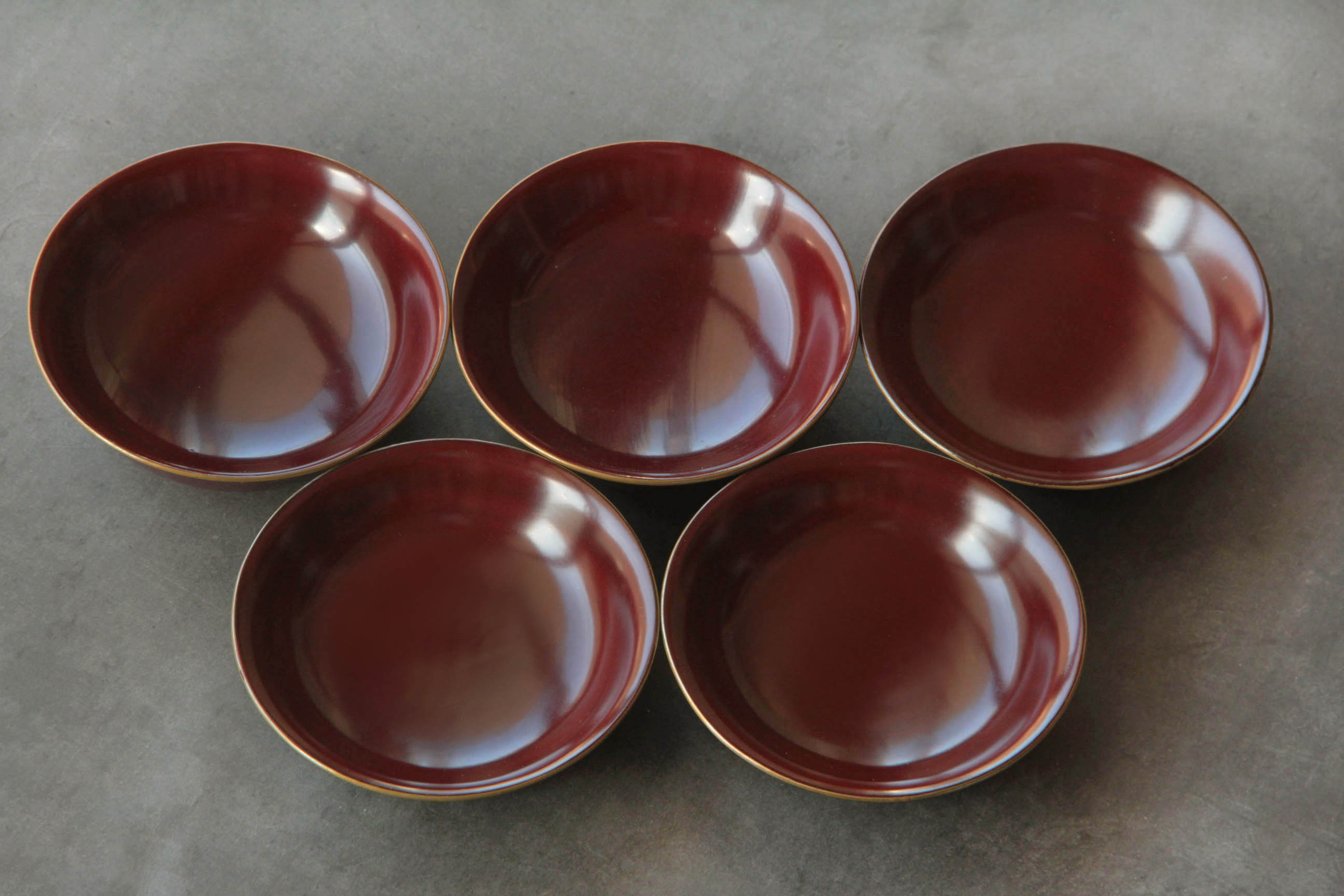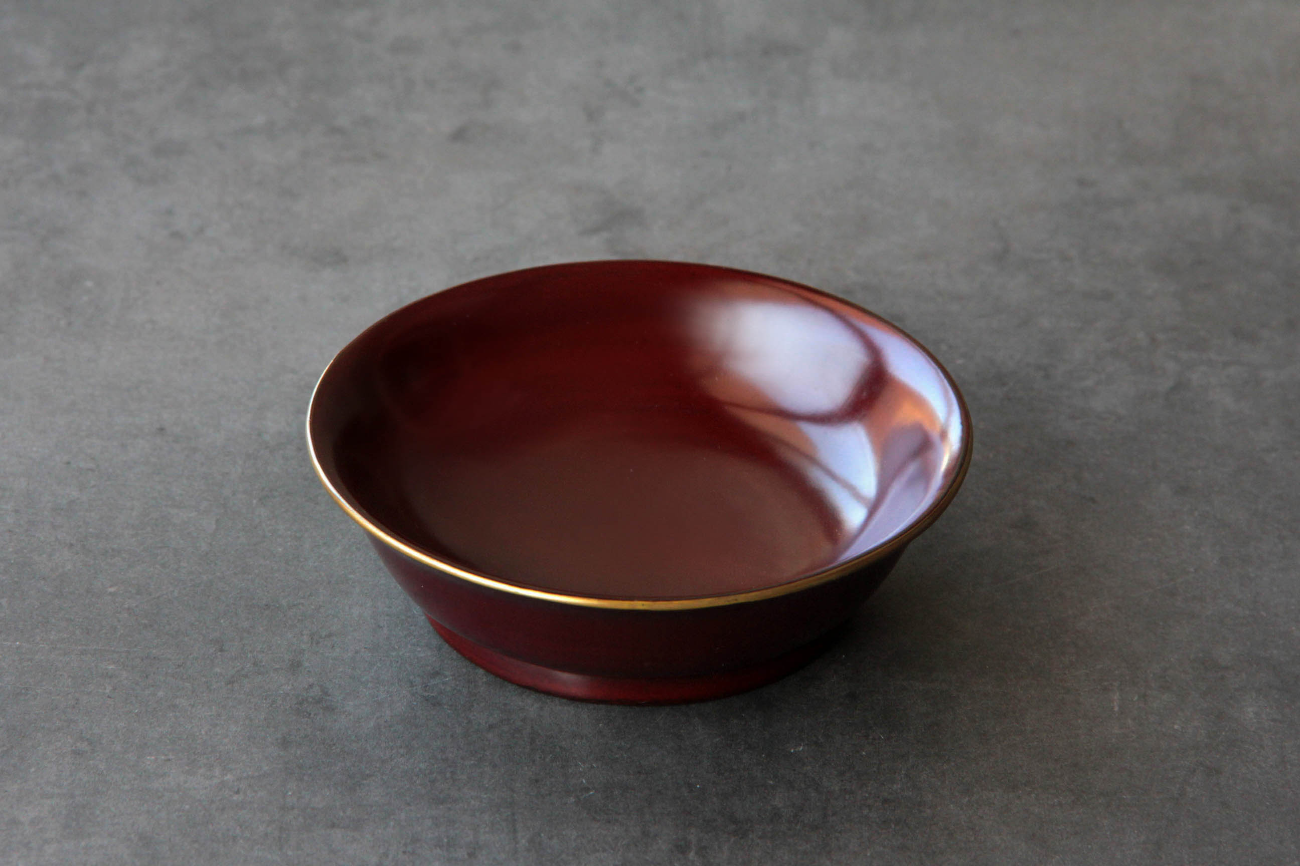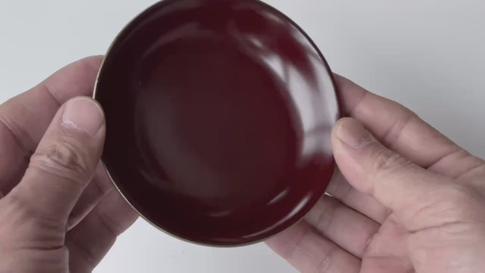 Antique Japanese urushi lacquer plate finished in a deep red tone.