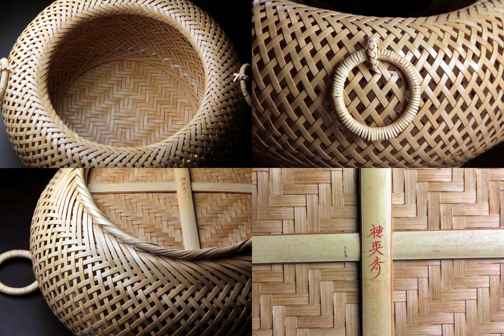 Bamboo Basket Vase by Ho Eisai | Japanese Hand-Woven Hanaire