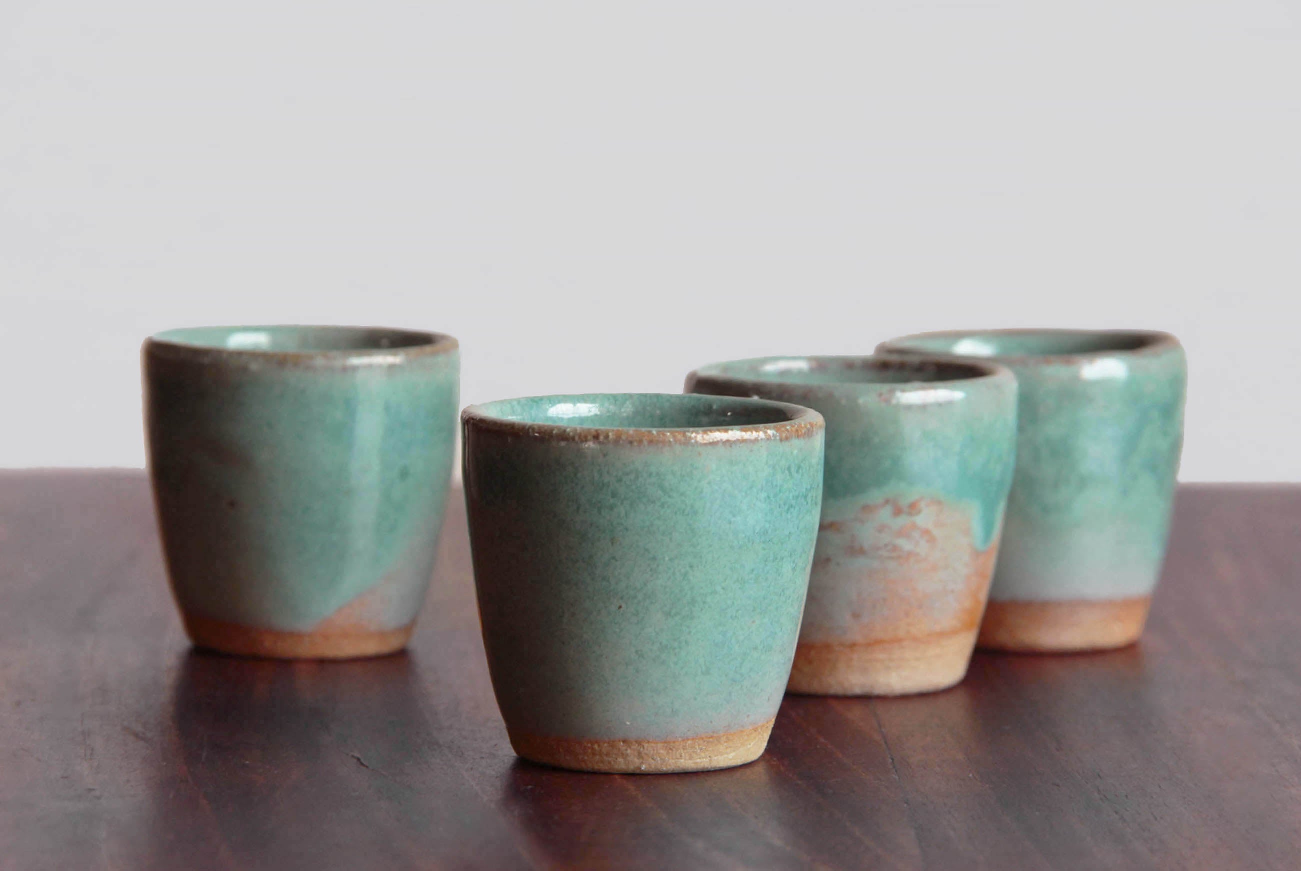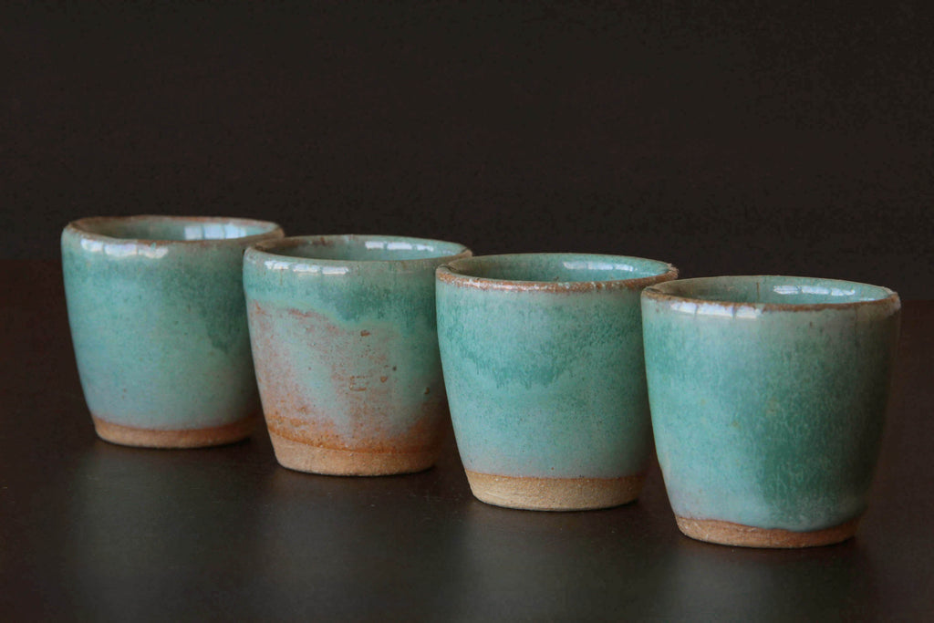 Vintage Sake cup with nice light-green glaze from Mashiko ware.