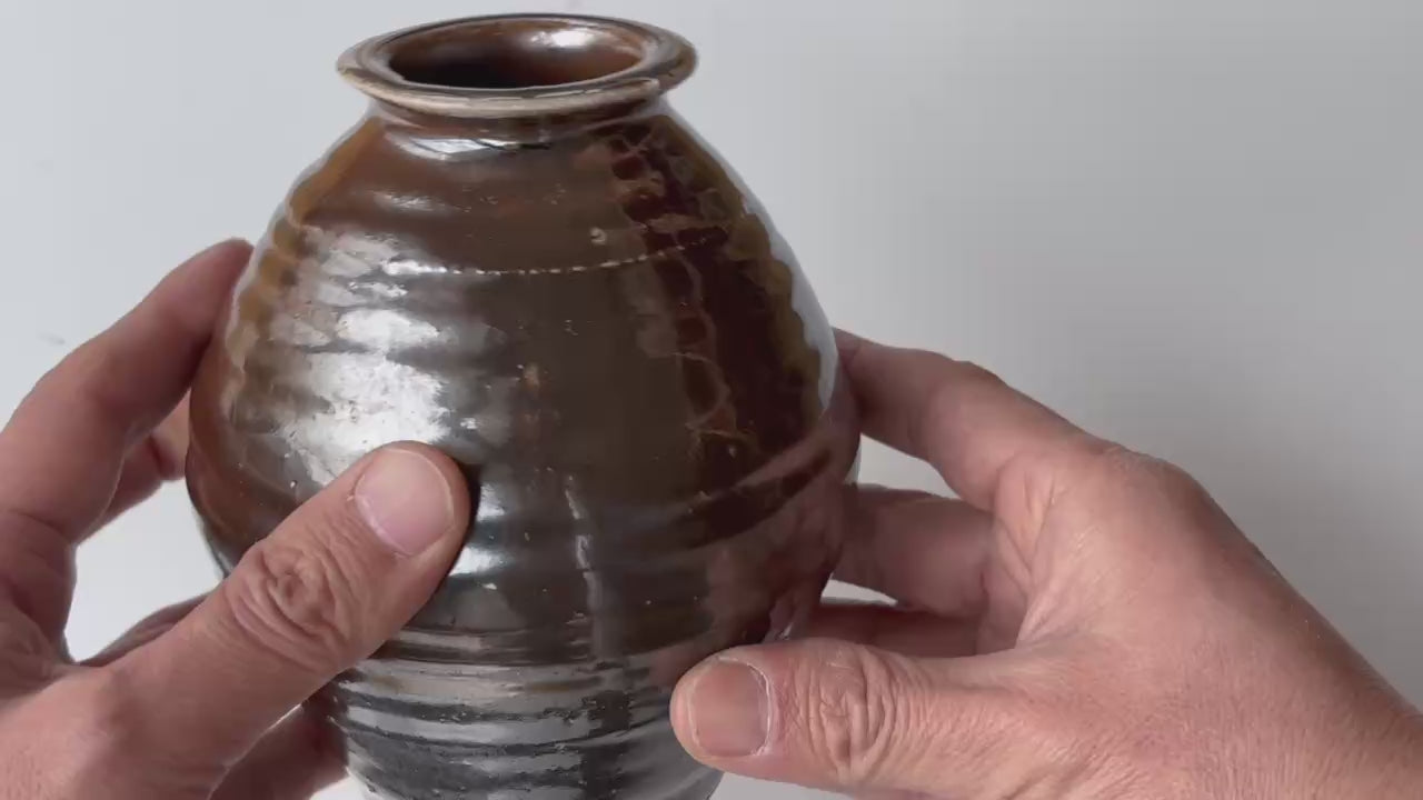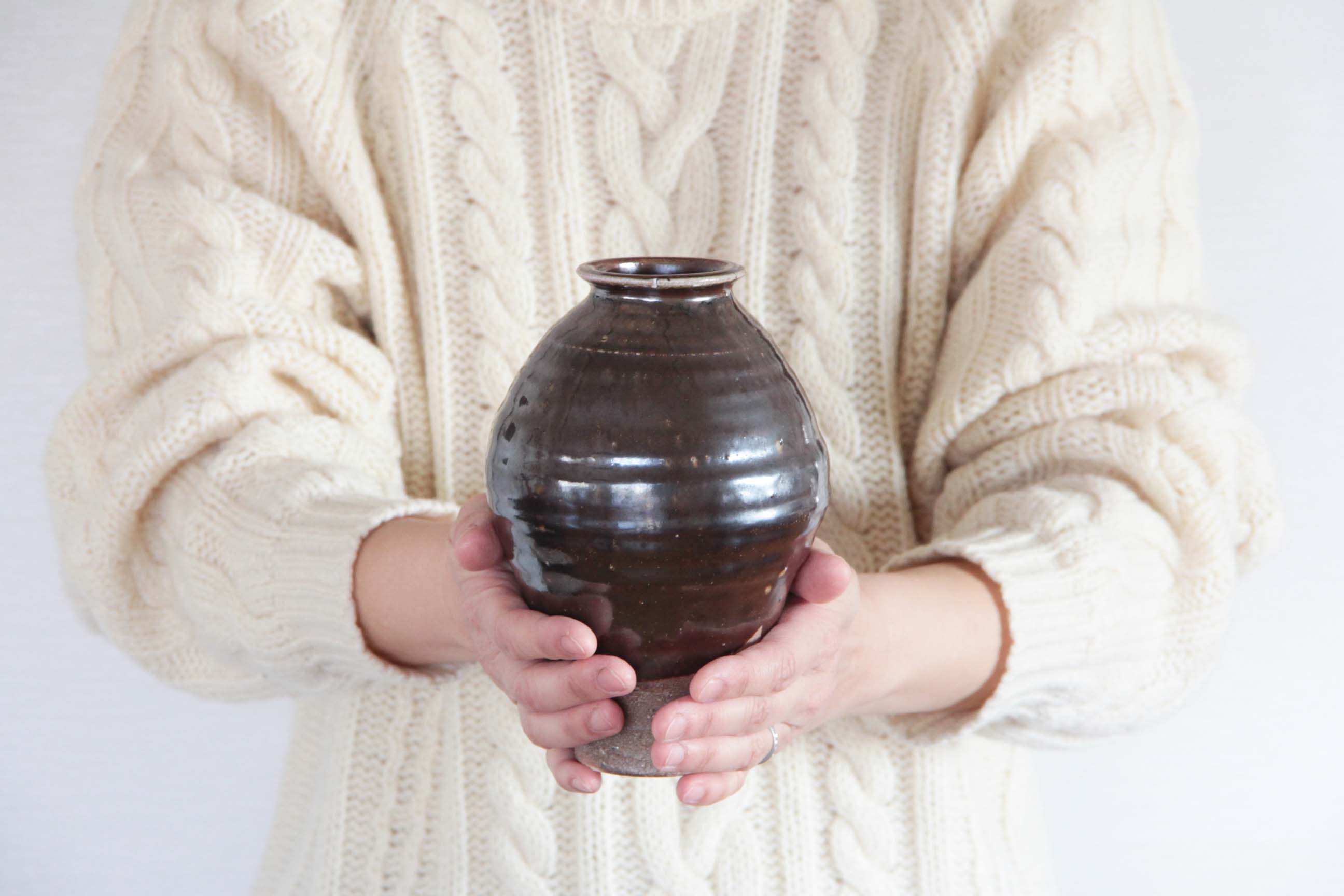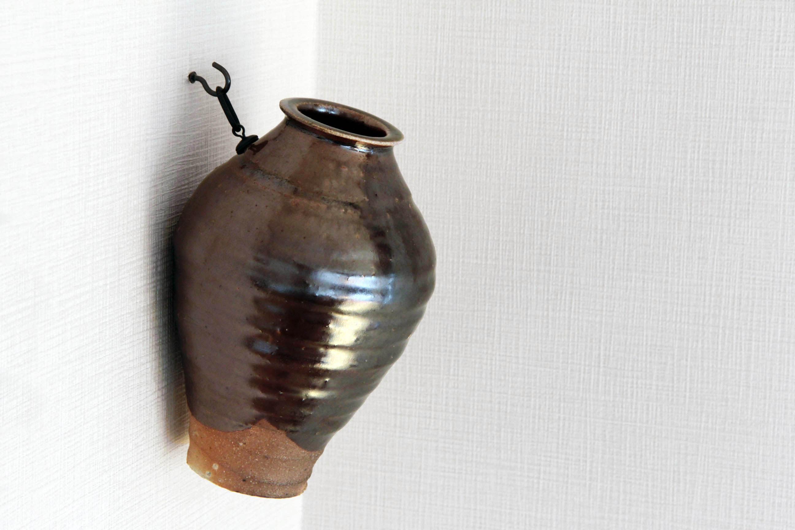 Wall-Hanging Stoneware Vase | Japanese Vintage Pottery