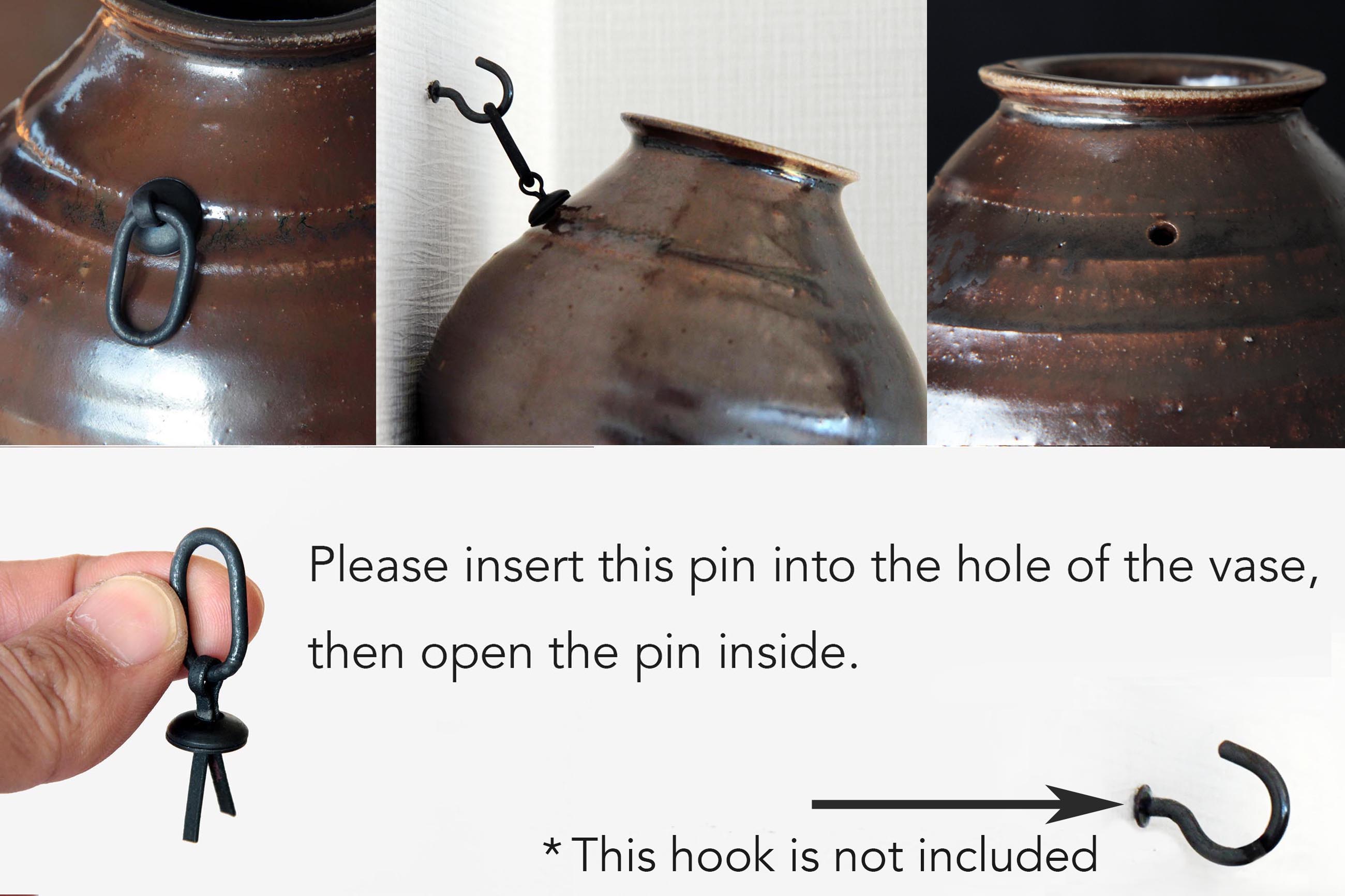 A small hole is made near the shoulder of the vase. By inserting the included metal pin into this hole and opening it inside, the vase can be securely hung on a wall hook. The pin is fully removable, allowing the vase to be used as a freestanding vessel when placed on a flat surface.