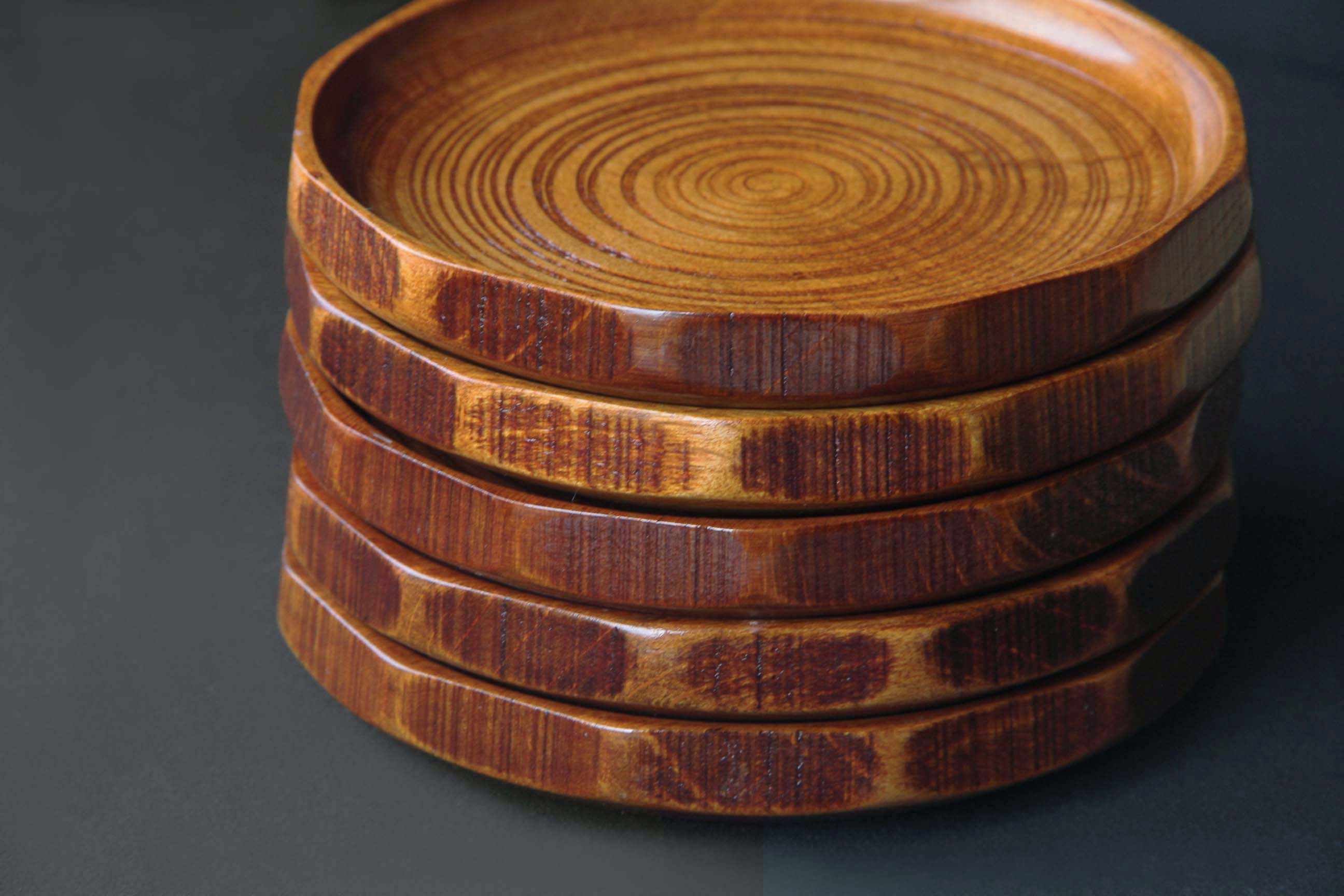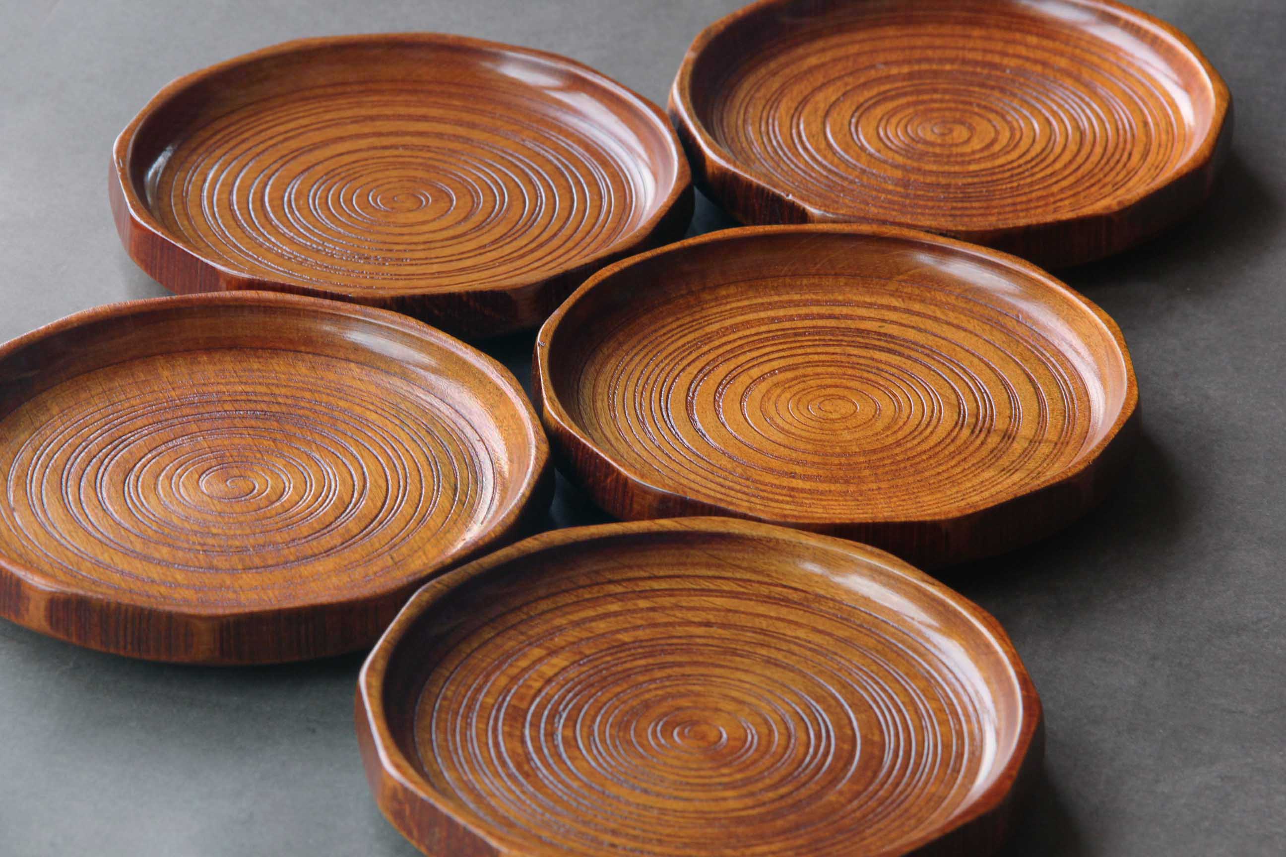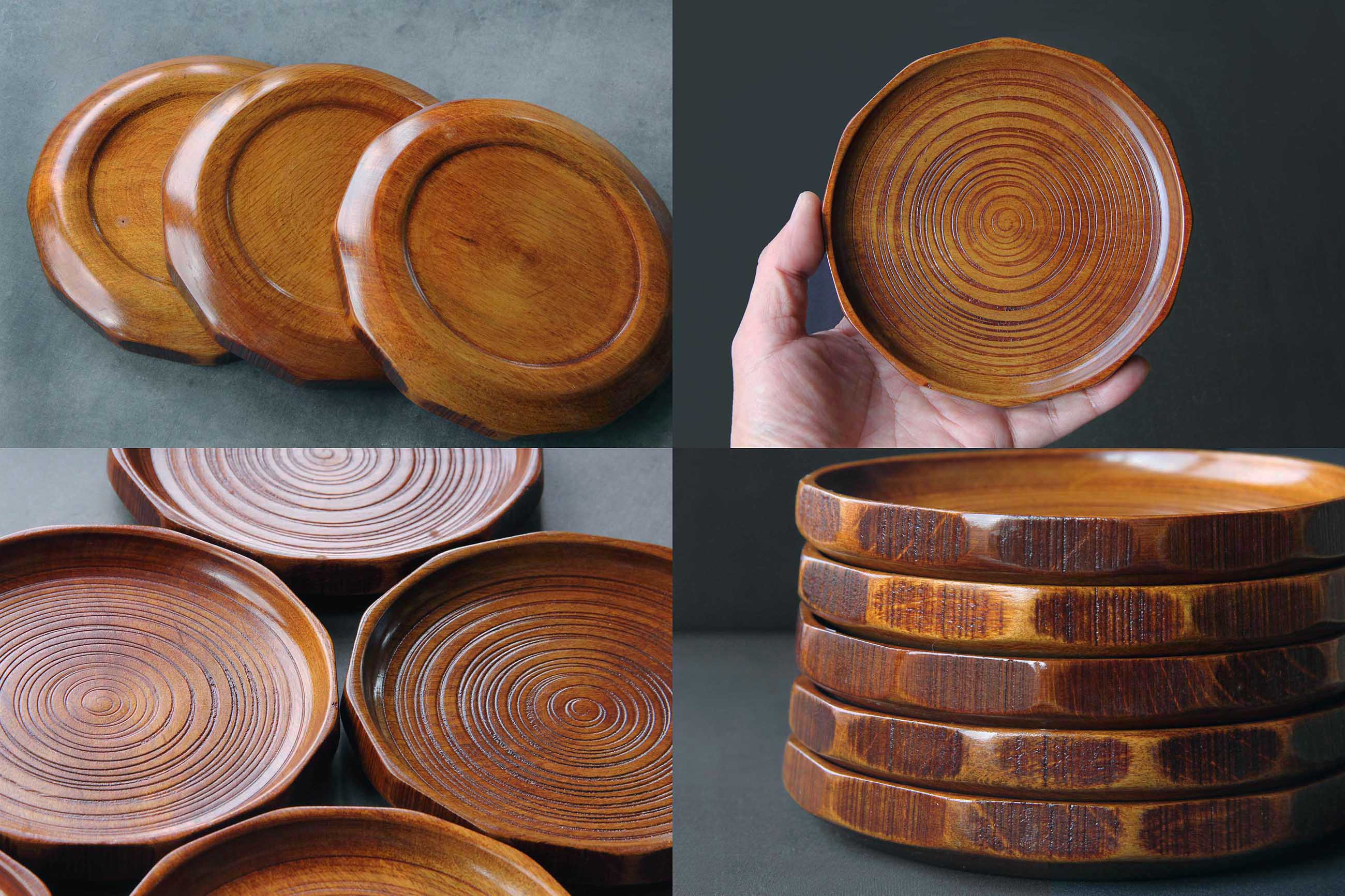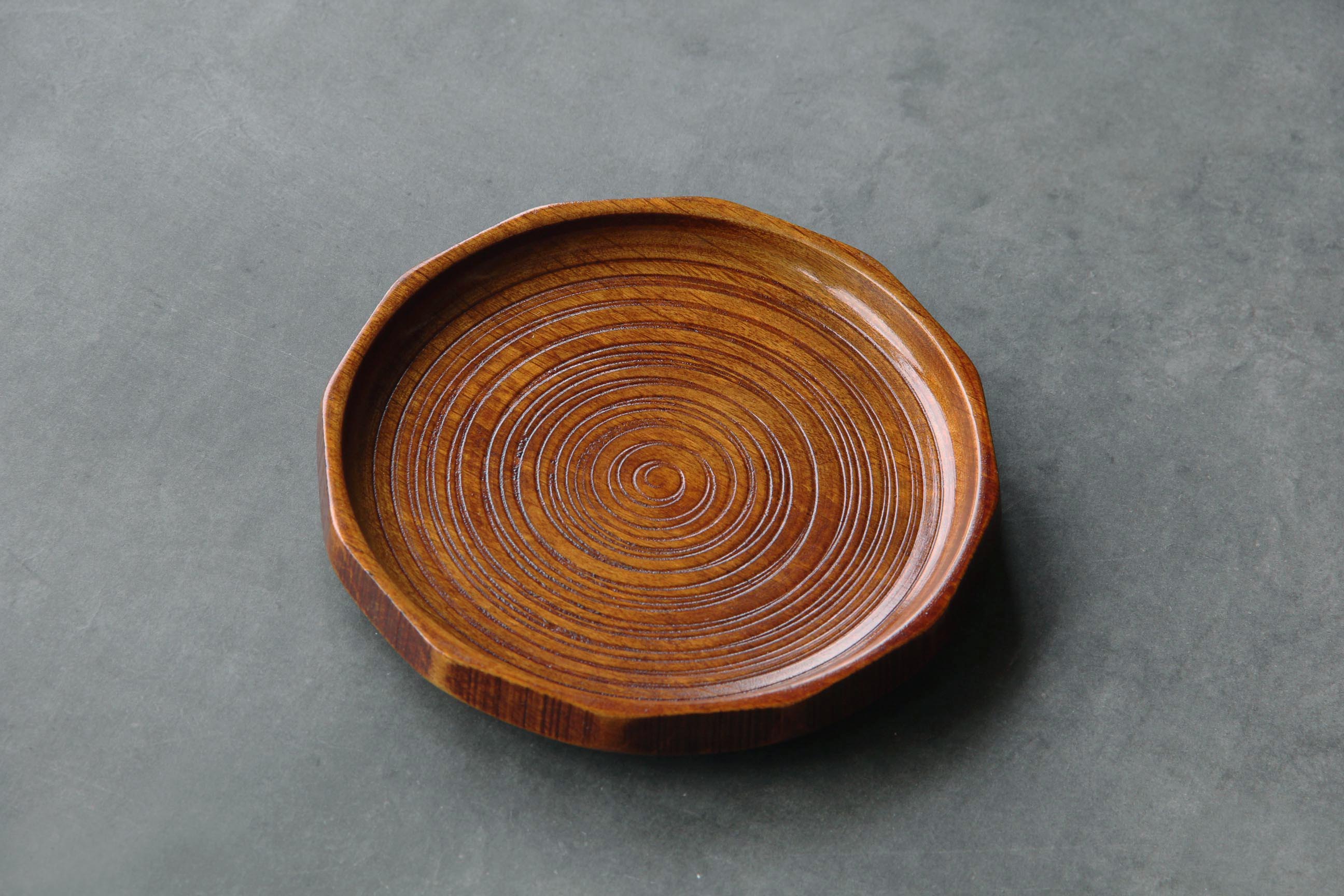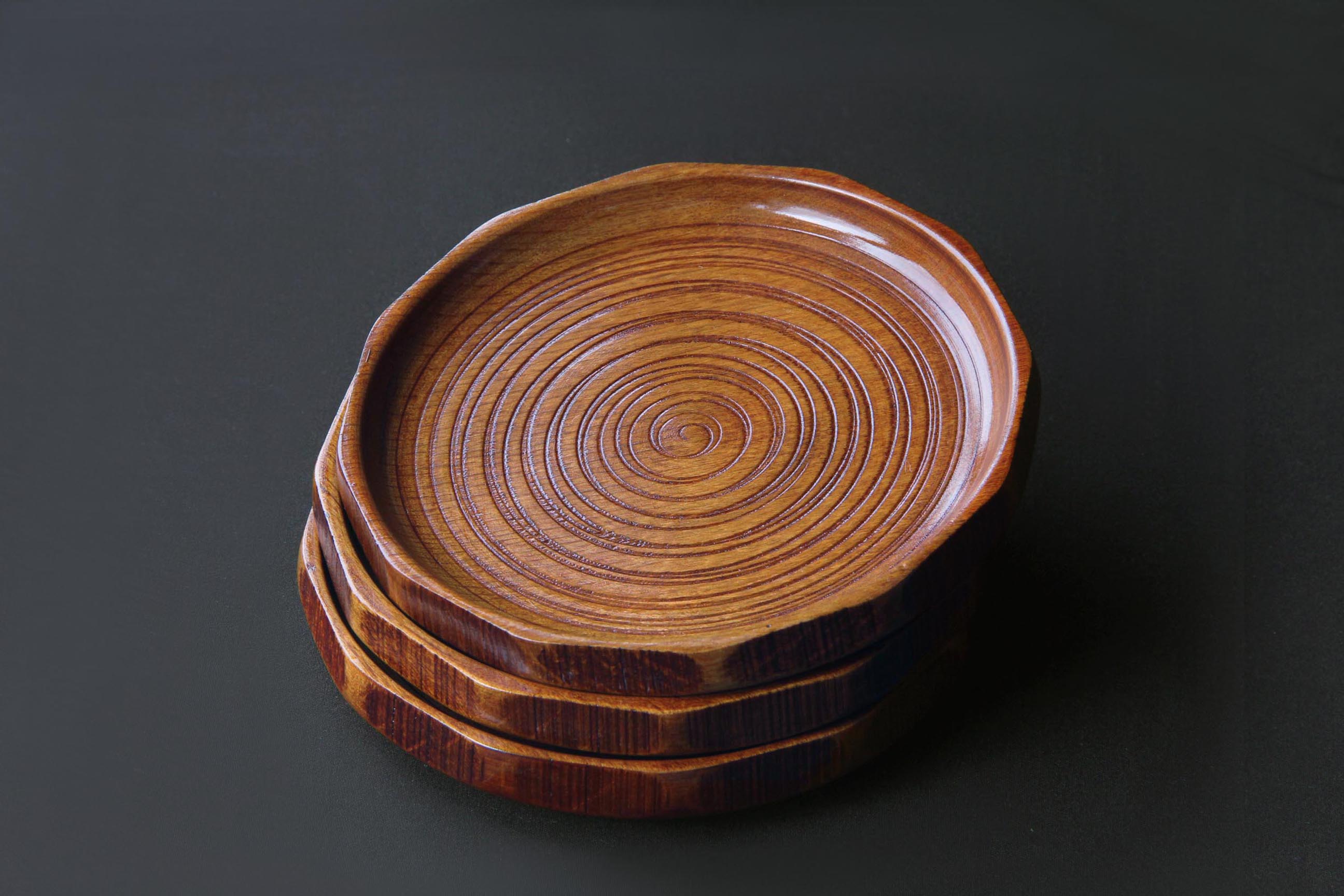 Carefully finished Japanese wooden plate by a skilled artisan.