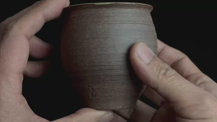 This Japanese tea cup features an unglazed exterior and a glazed interior.
