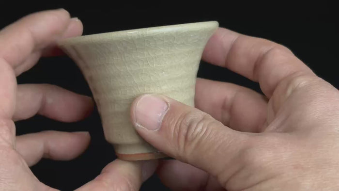 This is a Miyajima-yaki tea cup from Hiroshima Prefecture, featuring a beautiful crackle glaze.