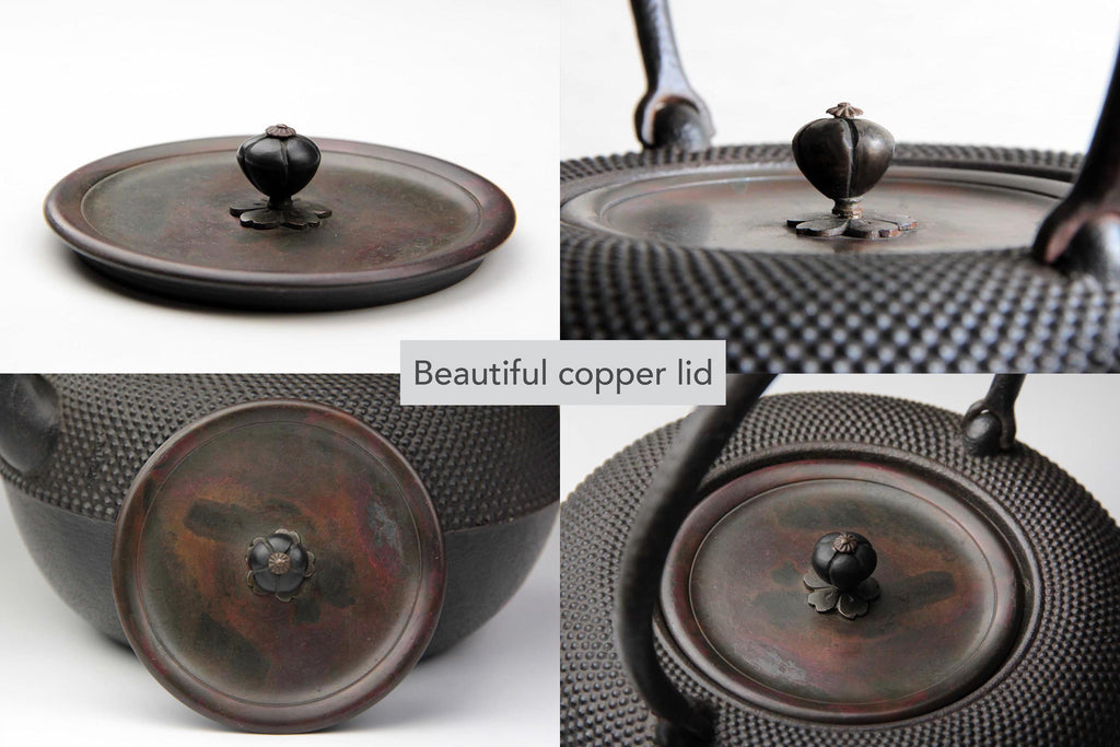 * All our Tetsubin kettles are carefully conditioned before sale, ready for immediate use. For vintage kettles, we perform the time-consuming conditioning process - boiling green tea and letting it sit overnight, repeated several times - until the water runs clear, as old kettles often have interior rust that turns the water brown. The surface is also coated with Japanese camellia oil to help protect against rust.