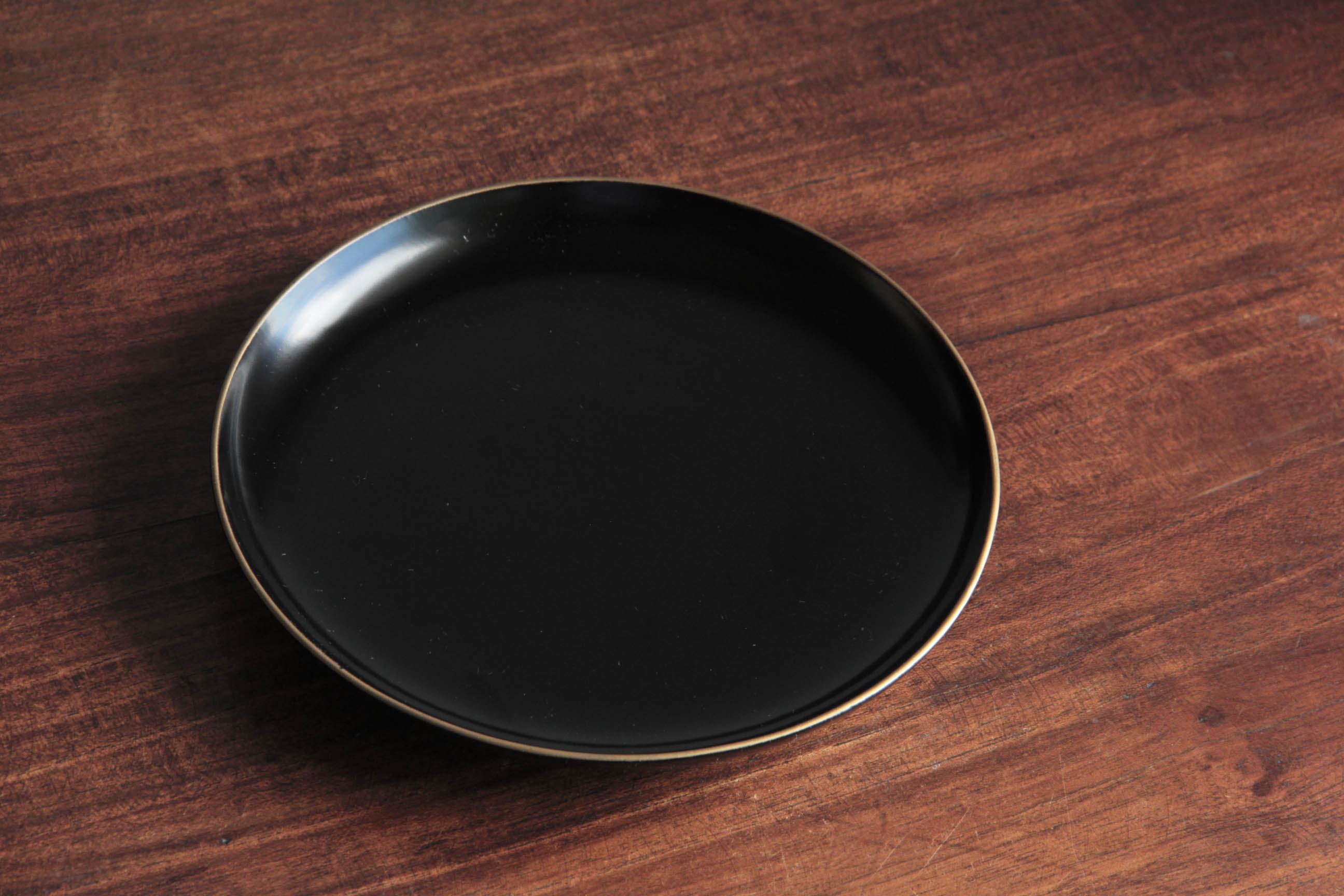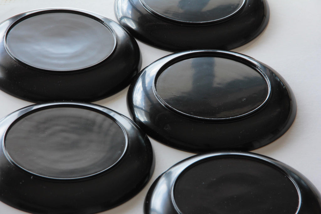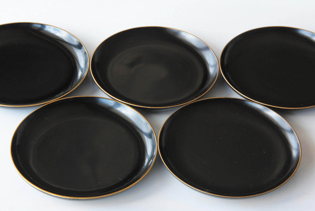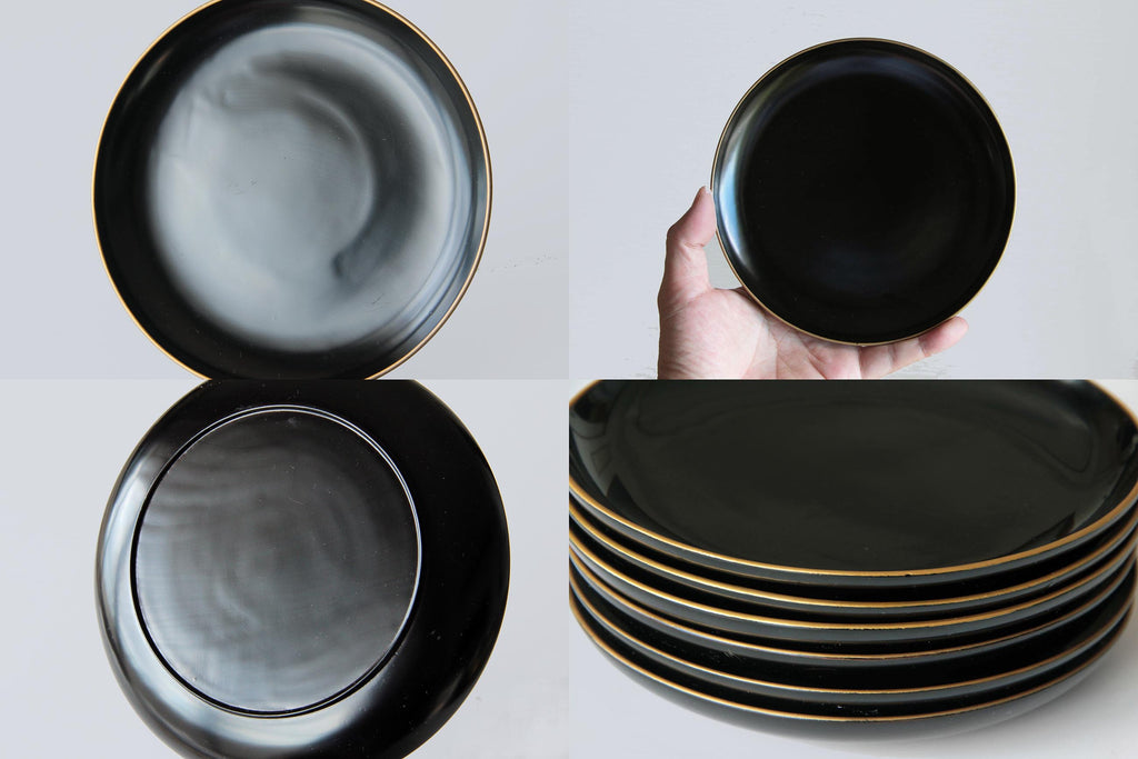 Elegant antique Japanese lacquerware plate finished in deep black Urushi lacquer.