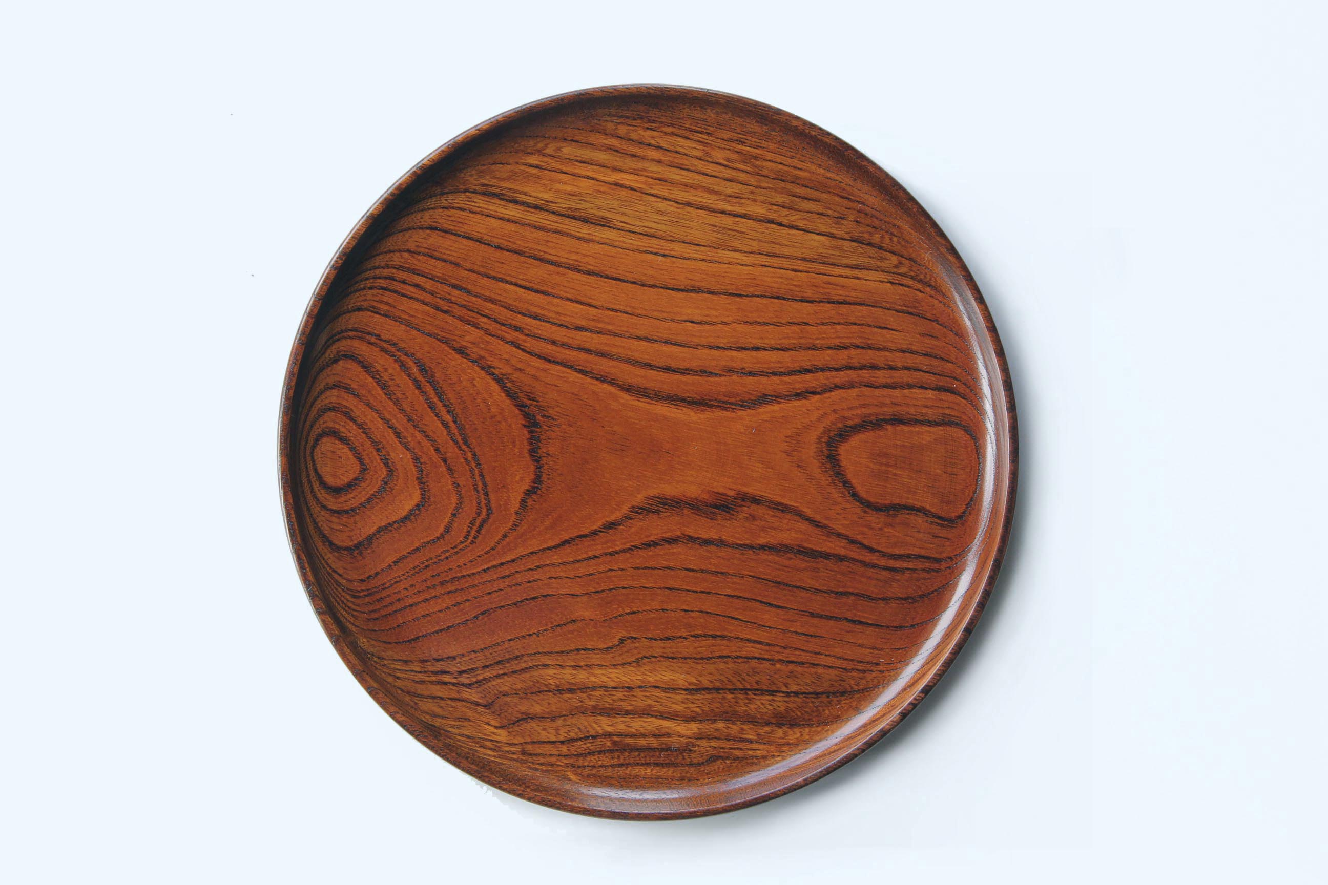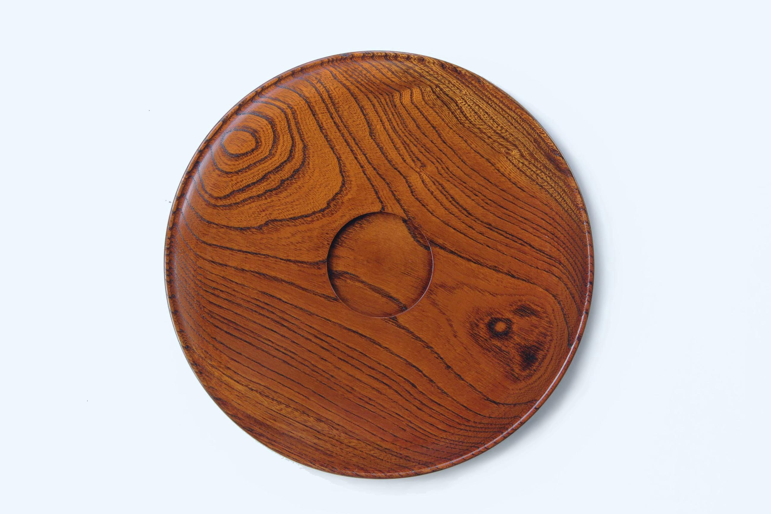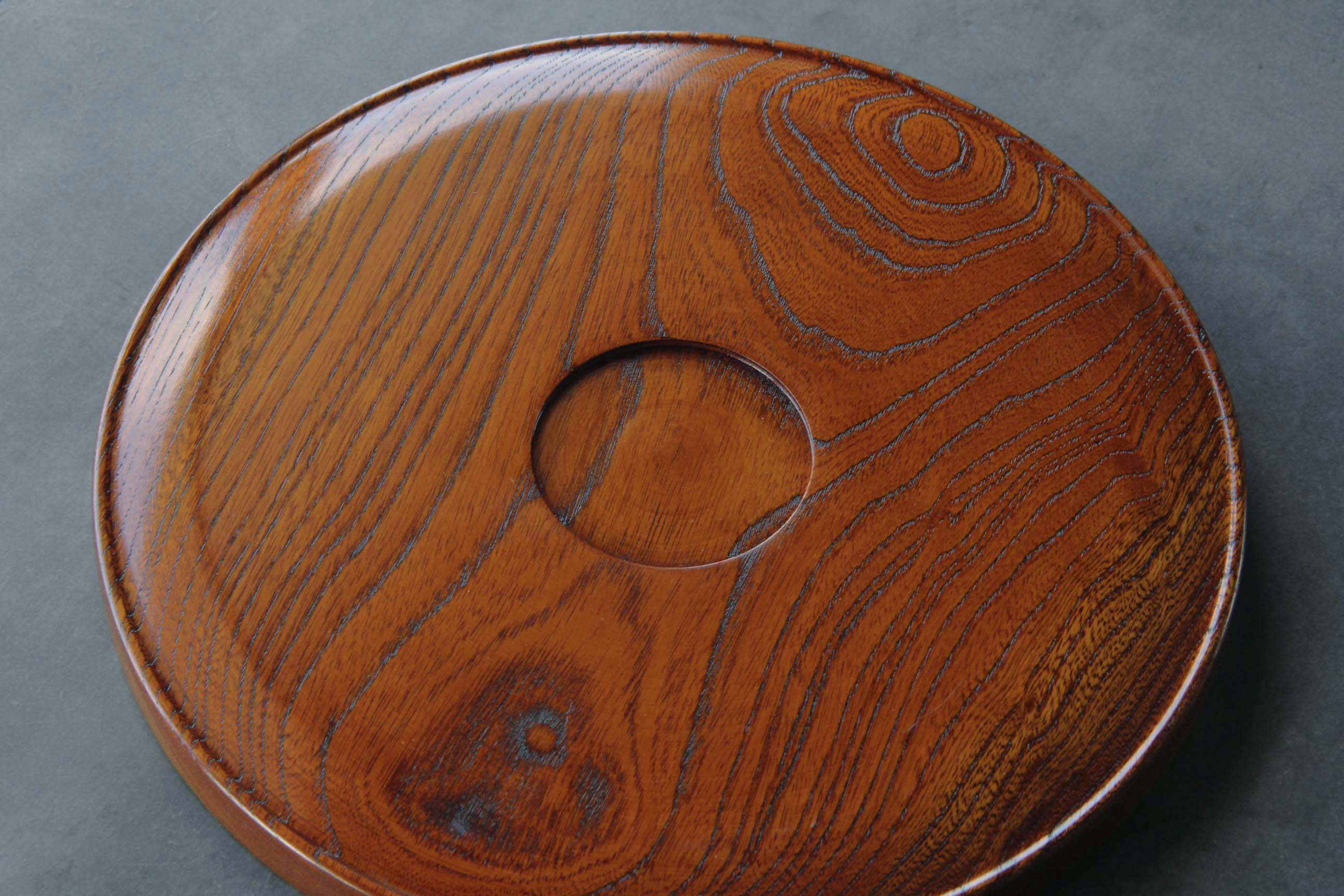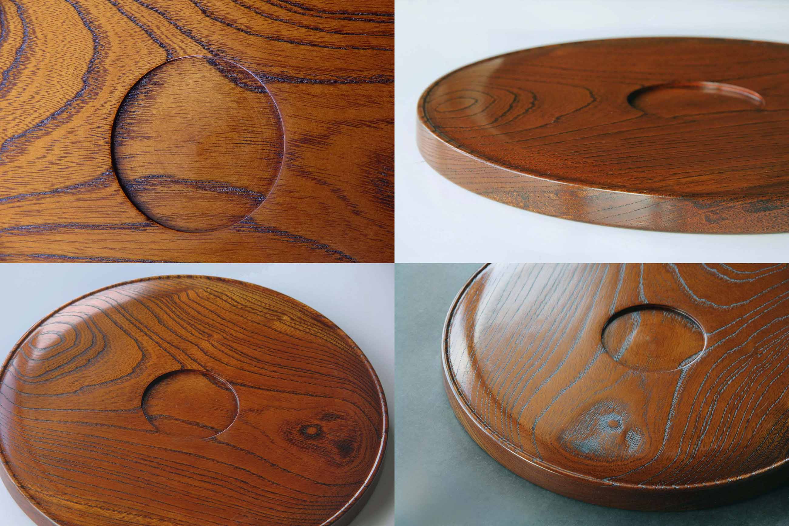 This round tray is crafted from solid keyaki (Japanese zelkova), a hardwood long valued in Japan for its strength, resilience, and striking grain.