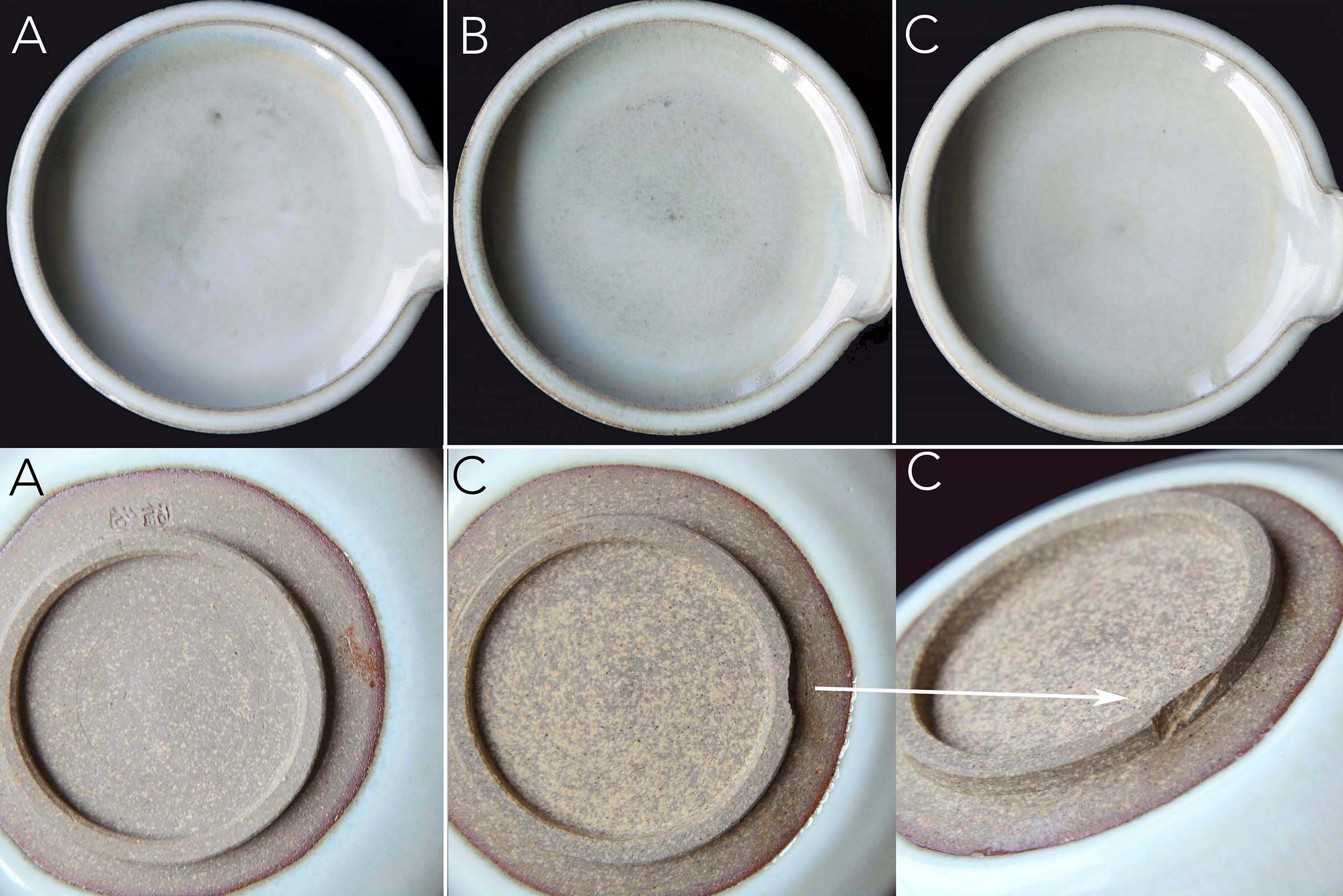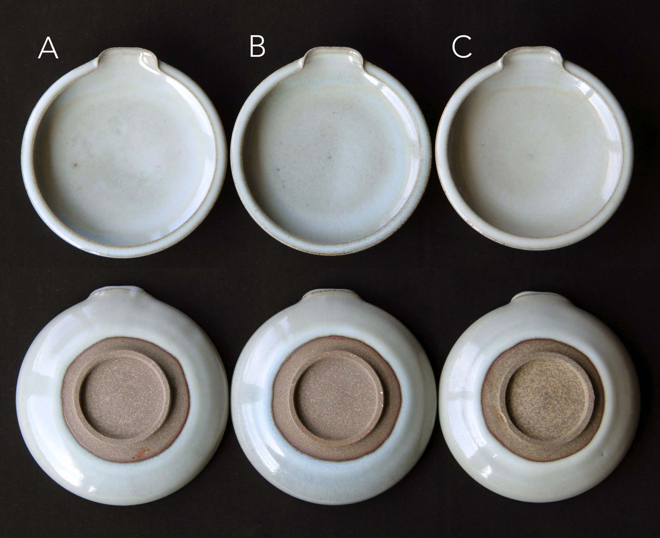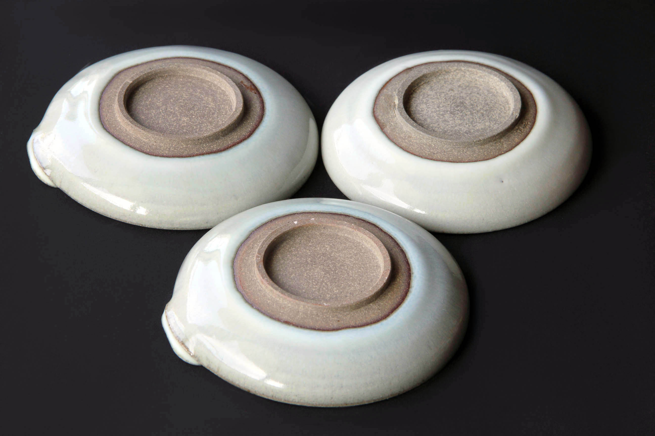 A small ceramic plate finished in a soft pale glaze with subtle tonal variation.