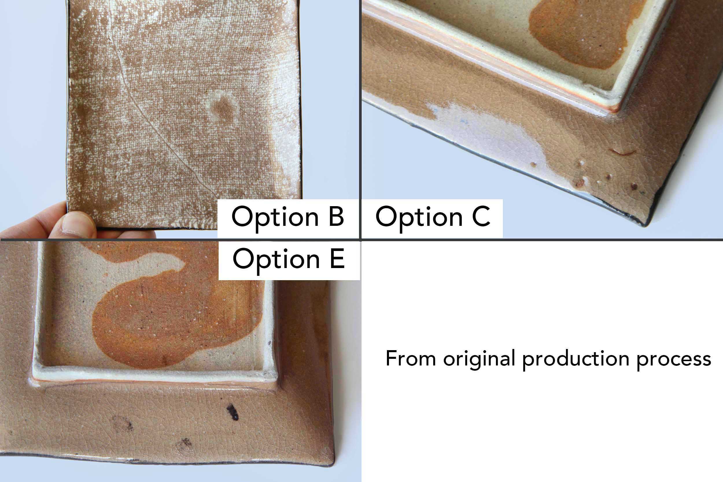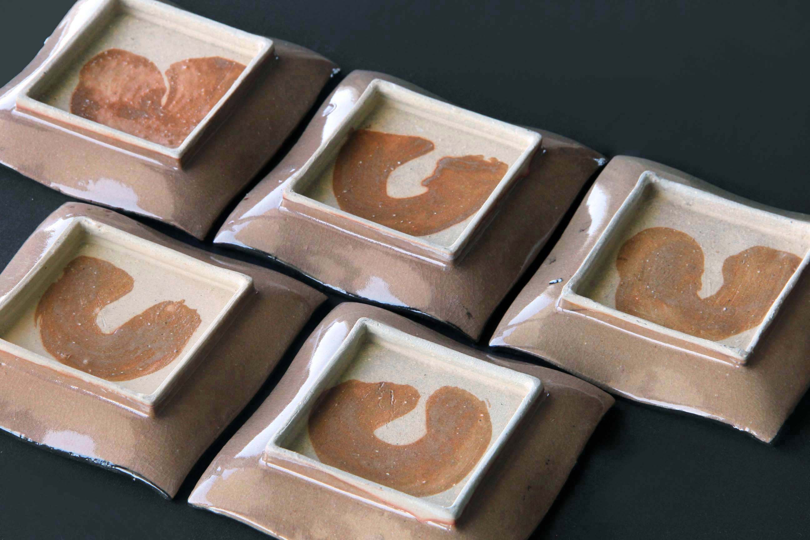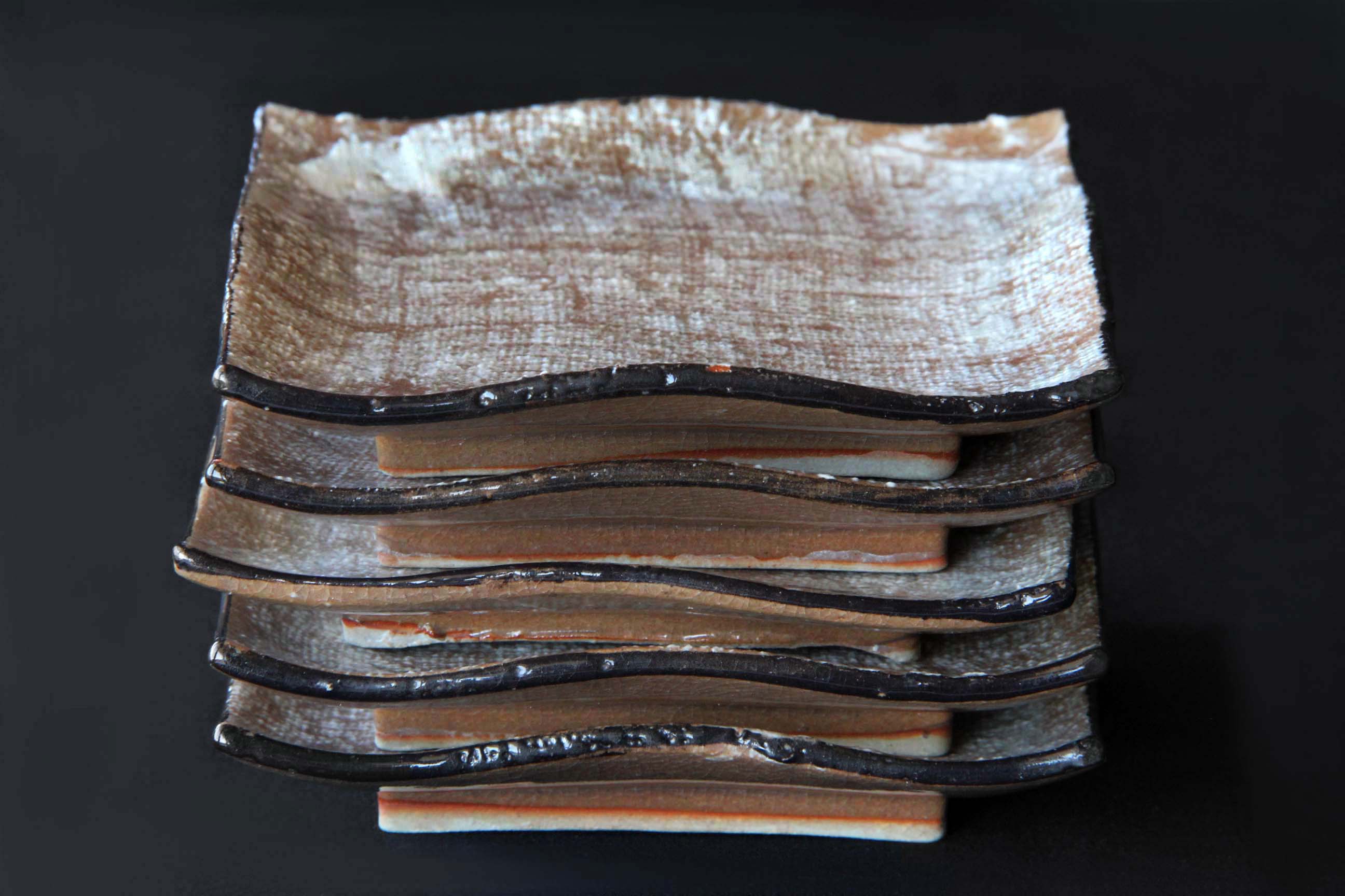 A vintage Japanese ceramic plate with a softly undulating square form and a woven-cloth-like pattern across the surface.